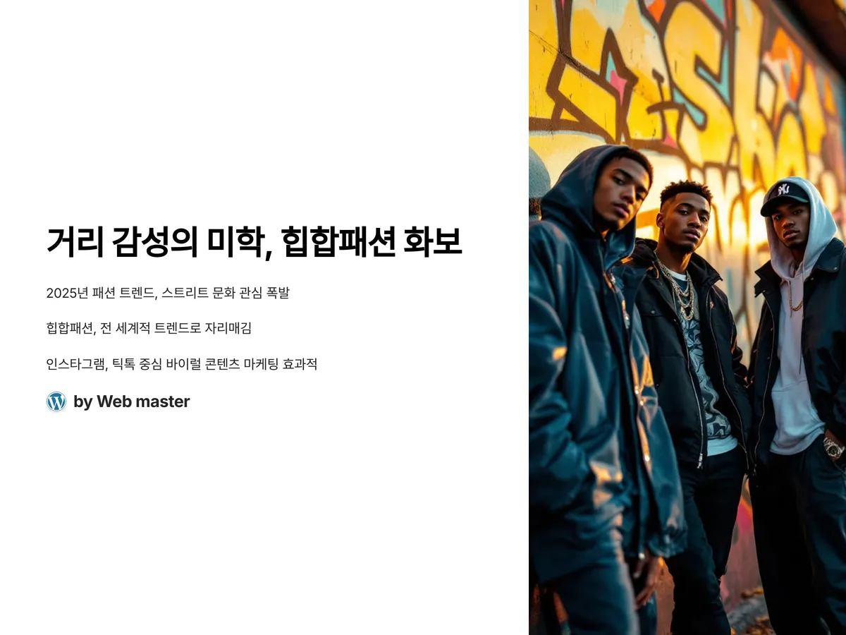 2025년 패션 업계는 스트리트 문화에 대한 관심이 폭발적으로 증가하며, 특히 '힙합패션'은 이제 하나의 장르가 아닌 전 세계적인 트렌드로 자리 잡고 있습니다. 그만큼 힙합패션을 주제로 한 화보 촬영 역시 감성적이고 전략적인 접근이 요구되고 있으며, 인스타그램 및 틱톡 중심의 바이럴 콘텐츠 마케팅에서도 탁월한 퍼포먼스를 보입니다. 최근 들어 브랜드들은 단순히 제품만을 보여주는 화보에서 벗어나, 힙합 고유의 스웨그와 태도, 거리를 배경으로 한 생생한 분위기를 살린 스타일링과 촬영 기법에 집중하고 있습니다.