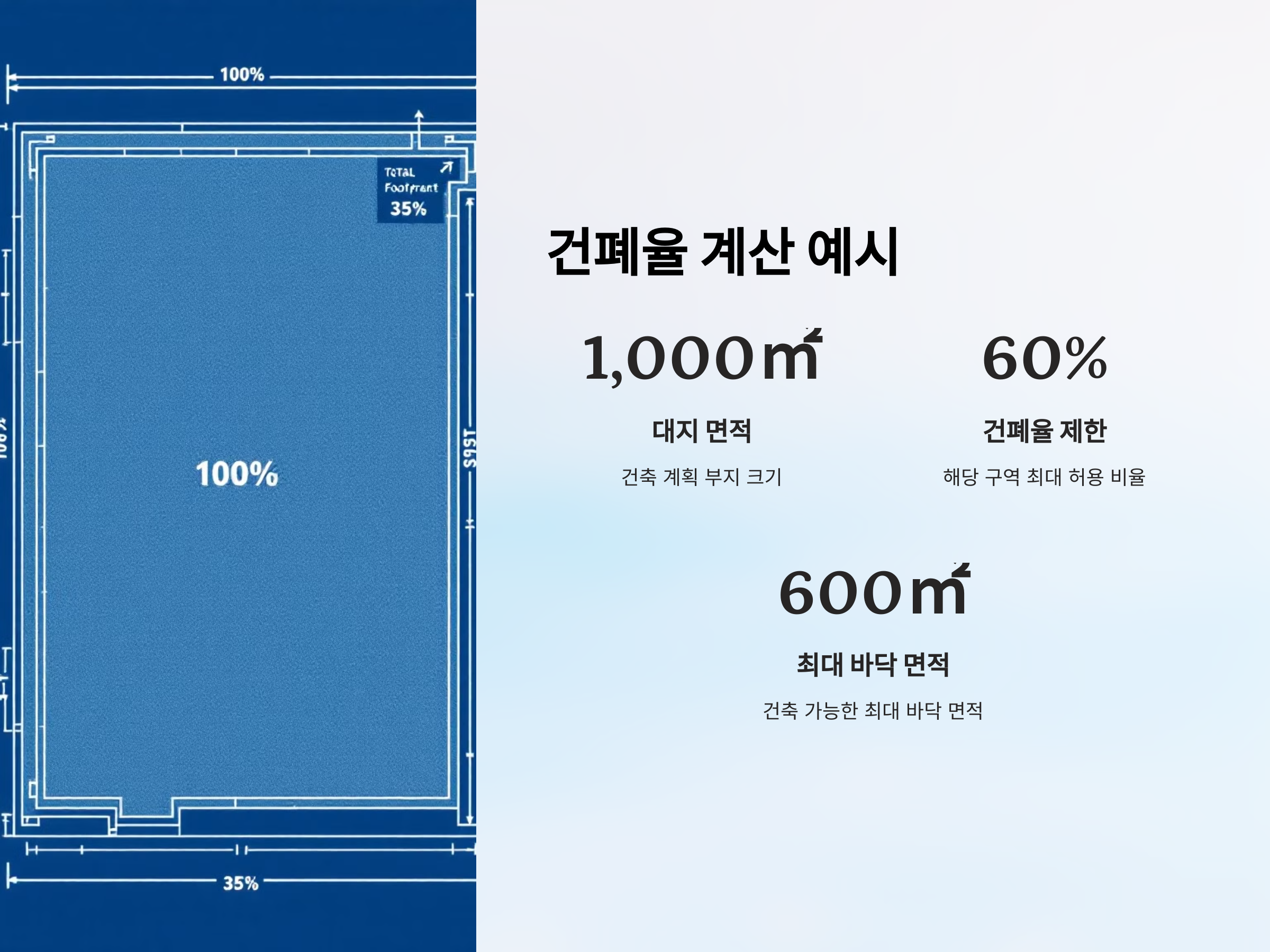 대부분의 국가에서는 건폐율을 법적으로 제한하고 있으며, 이는 도시 계획과 환경 보호를 위한 중요한 기준입니다. 예를 들어, 건폐율이 60%로 제한된 구역에서 1,000㎡의 대지에 건축물을 지을 때, 건축물의 바닥 면적은 최대 600㎡를 넘을 수 없습니다. 건폐율은 지역에 따라 다르기 때문에, 건축을 계획하는 지역의 규제를 정확히 확인하고 이를 준수하는 것이 중요합니다.