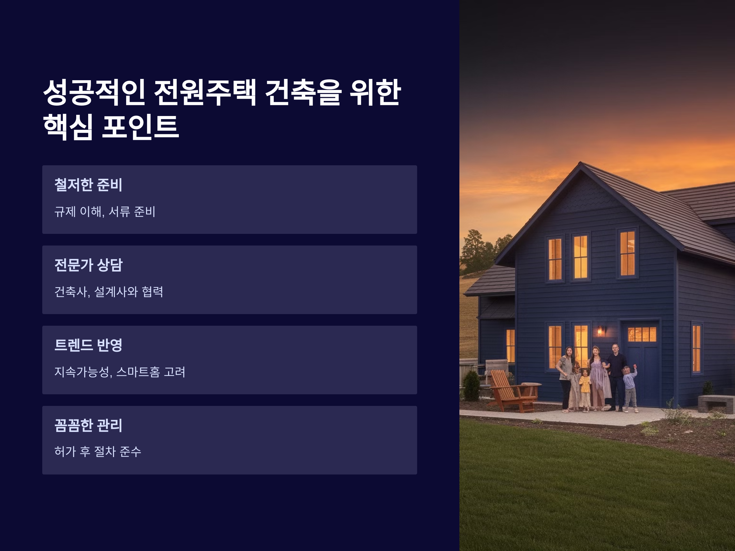 이 외에도, 전원주택은 고립된 지역에 위치하는 경우가 많아, 교통 접근성이나 인프라의 부족도 고려해야 할 점입니다. 이러한 요소들 또한 건축허가 절차에서 중요한 역할을 하게 됩니다.