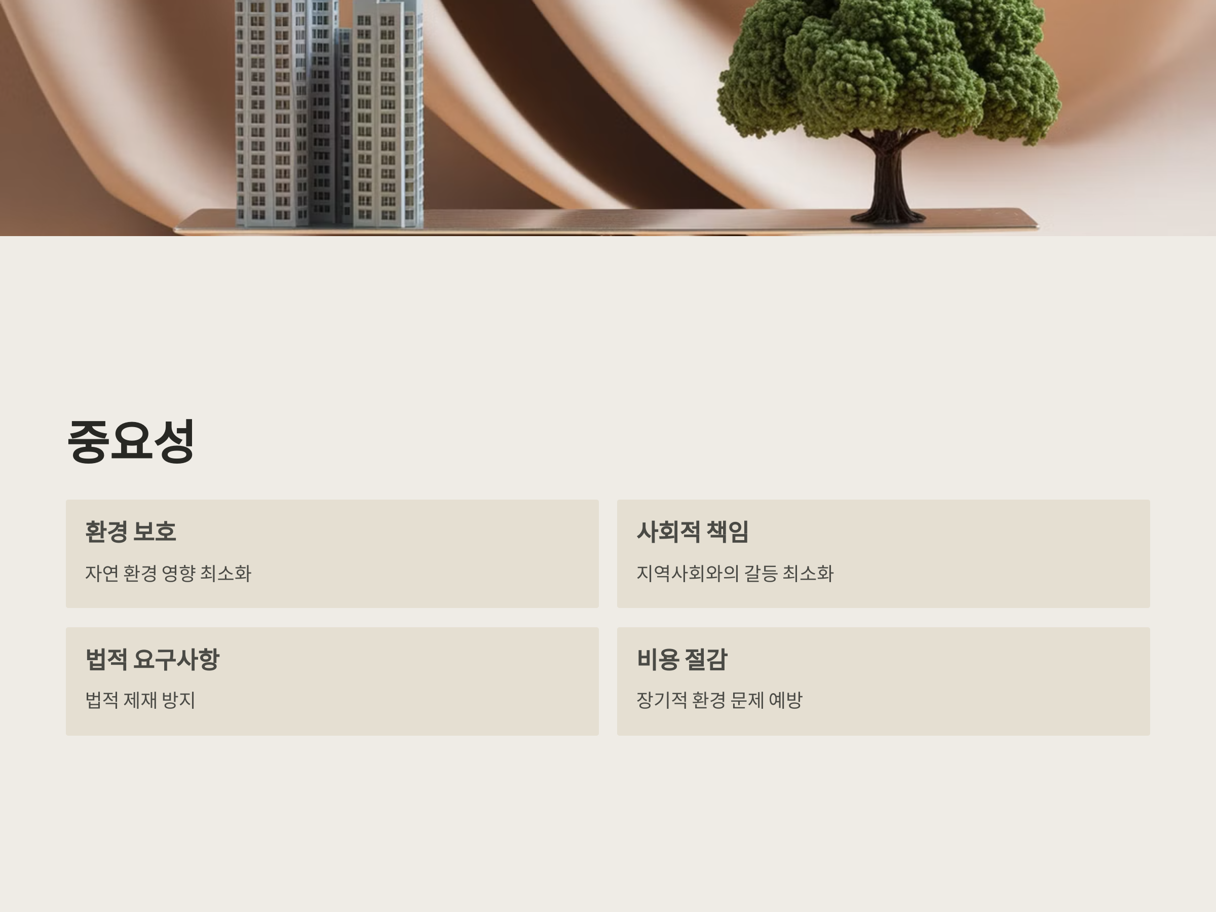 - 개발에 따른 환경 파괴를 최소화하고, 지속 가능한 건축 방안을 마련
