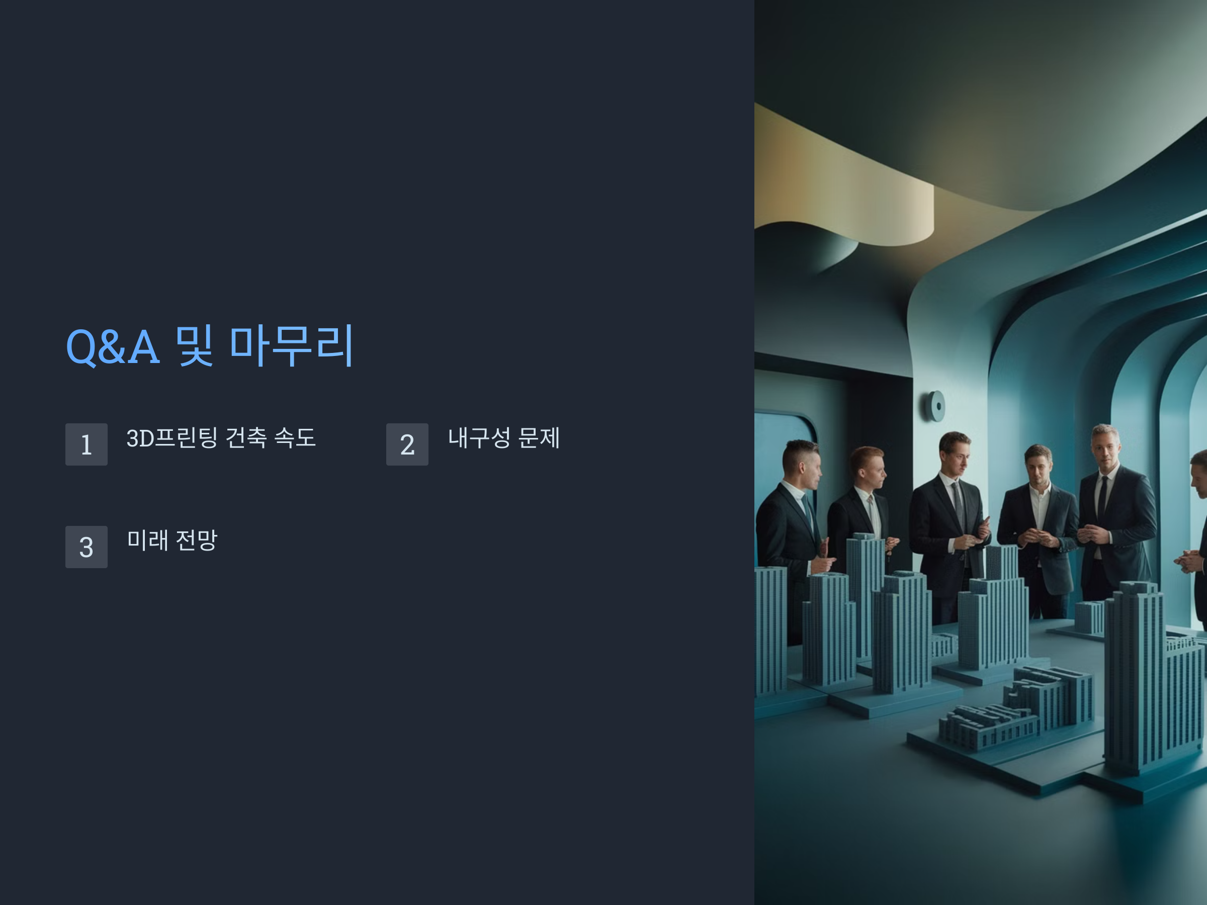 Q1. 3D프린팅 건축은 얼마나 빠르게 진행될 수 있나요?