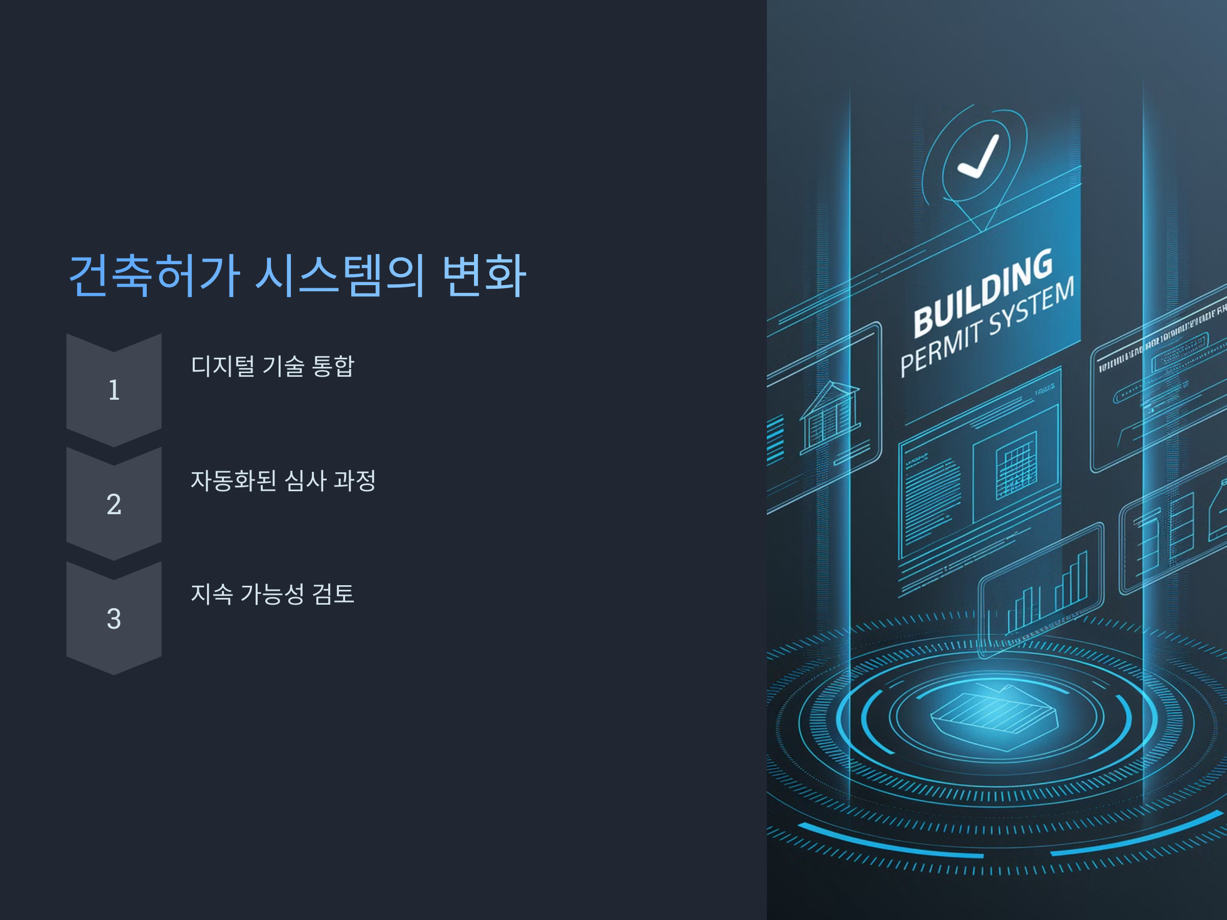 3D프린팅 건축의 보급이 확대됨에 따라, 건축허가 시스템은 큰 변화를 겪을 것입니다. 기존의 건축허가 절차는 시간이 오래 걸리고 복잡한 부분이 많았지만, 3D프린팅 기술을 활용한 건축은 이 과정에서 효율성을 높일 수 있는 가능성을 가지고 있습니다. 예를 들어, 건축허가의 심사 과정에서 더 많은 자동화 기술이 도입될 수 있습니다.