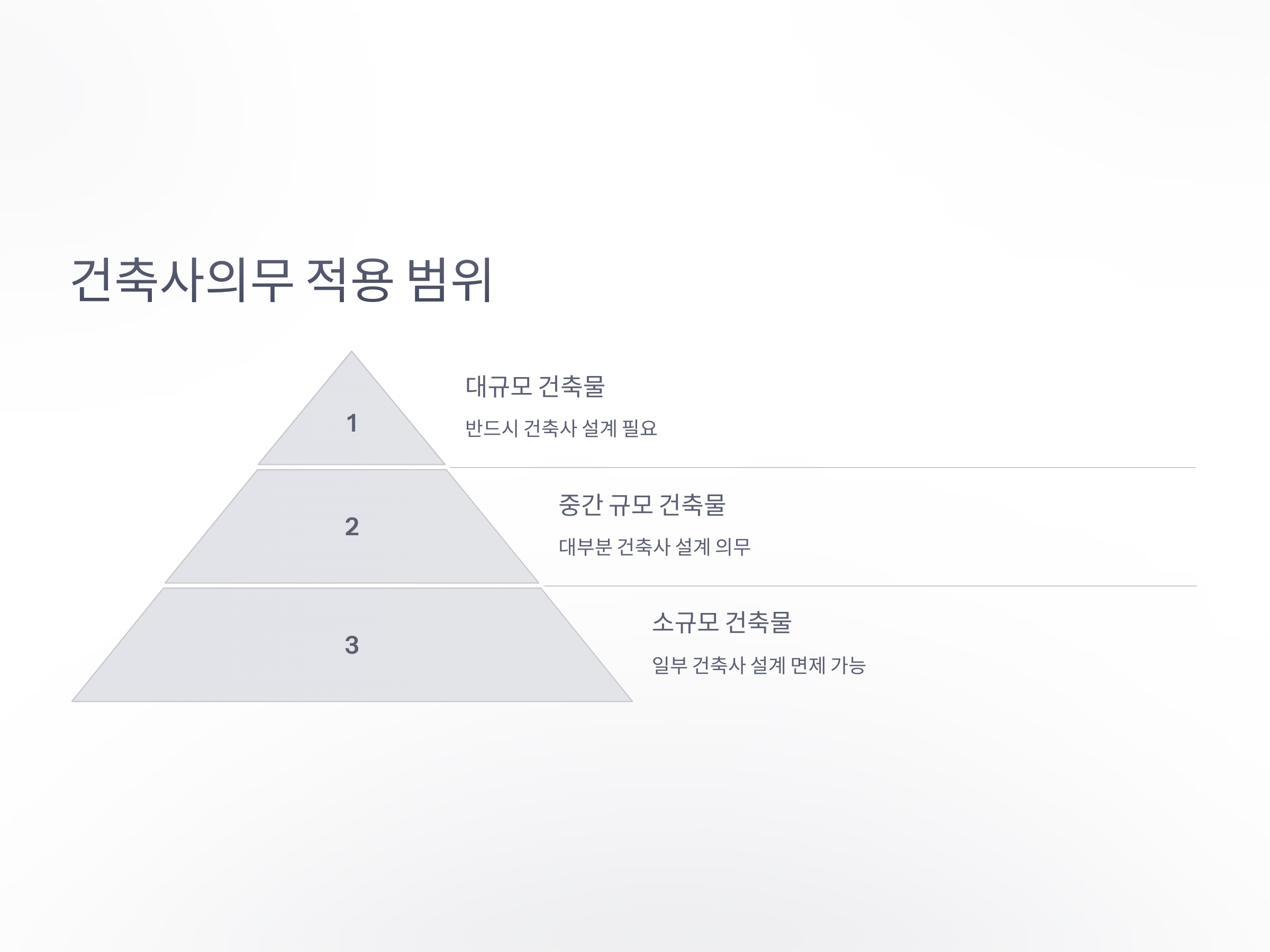 건축사의 설계 의무는 모든 건축물에 적용되는 것은 아닙니다. 건축법에서는 일정 규모 이상의 건축물에 대해서만 건축사의 설계를 의무적으로 요구합니다. 예를 들어, 일정 규모 이상의 주택이나 상업시설, 공공시설 등은 반드시 건축사의 설계를 받아야 합니다.
