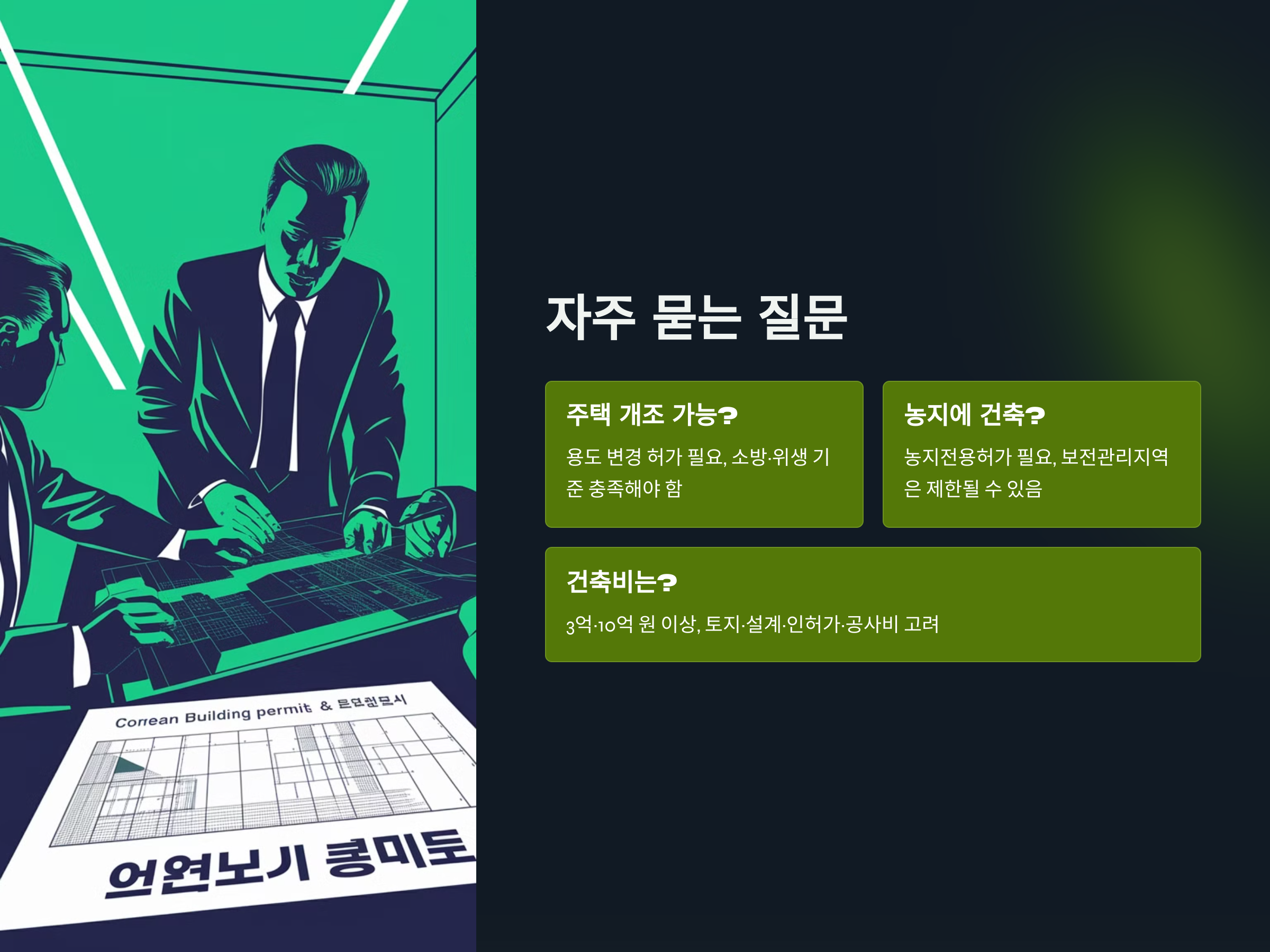 - 허가 신청: 관할 시·군·구청에 건축허가 신청서 제출
