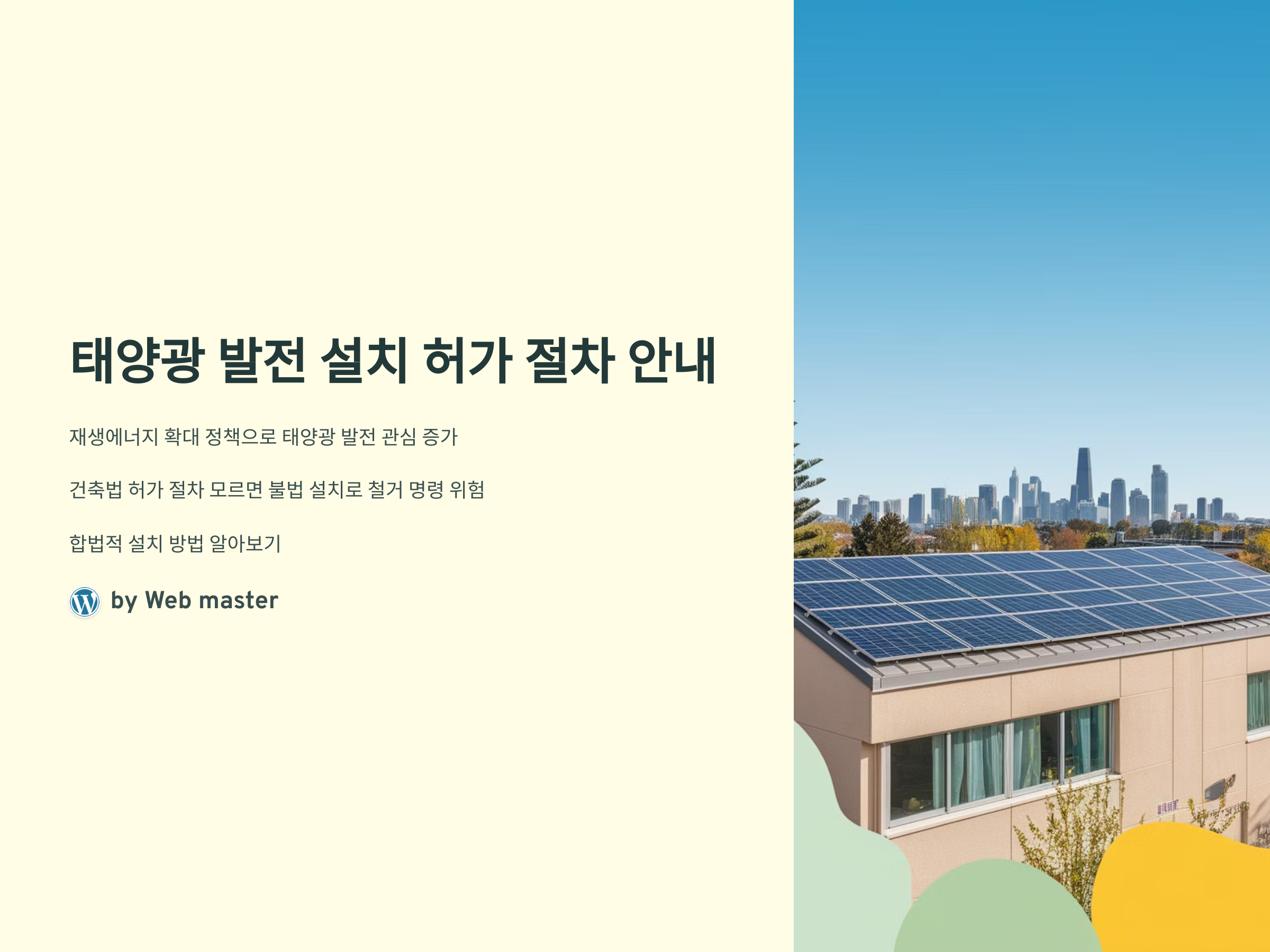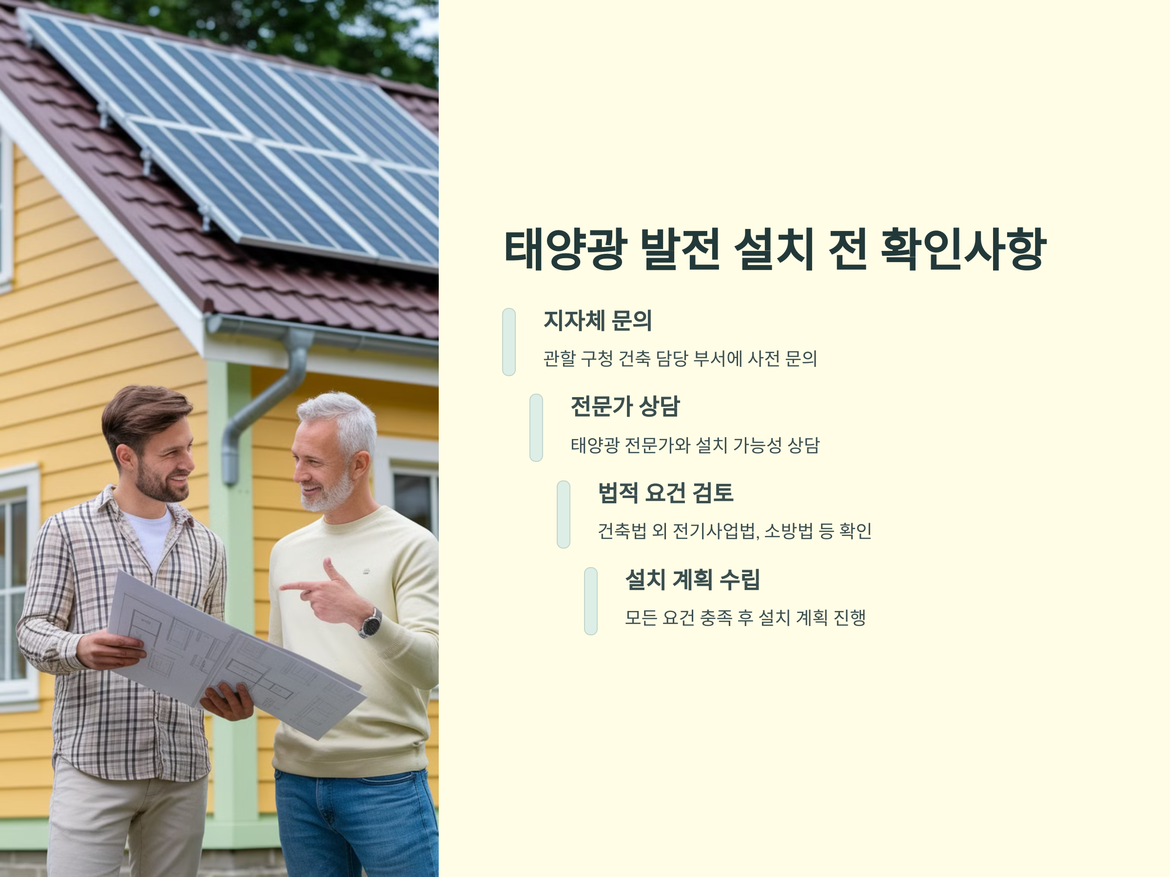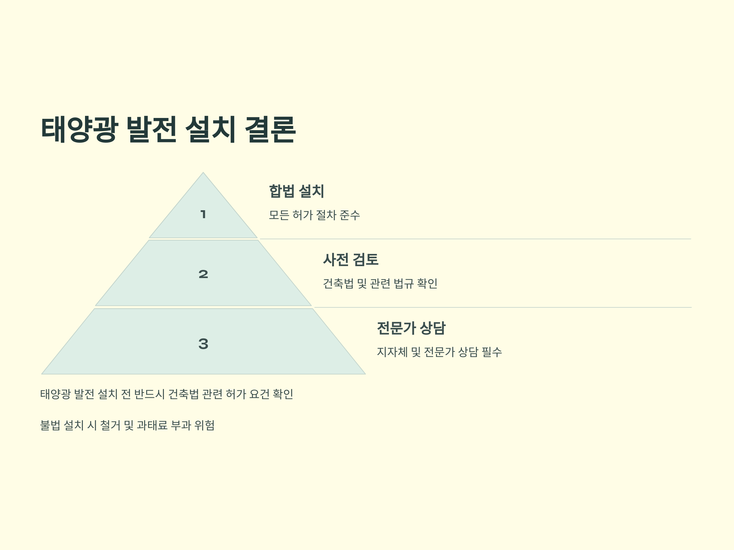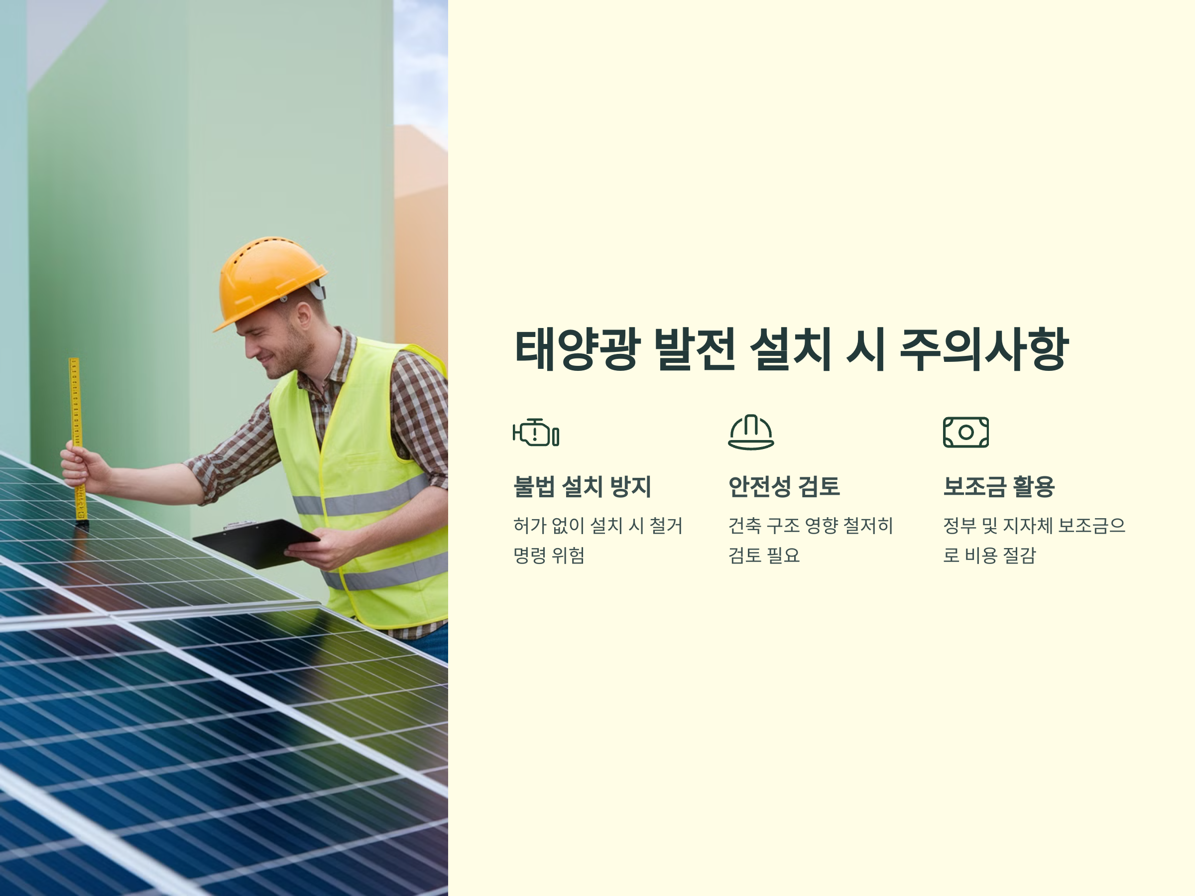 - 불법 설치 방지: 허가 없이 태양광을 설치하면 철거 명령을 받을 수 있습니다.
