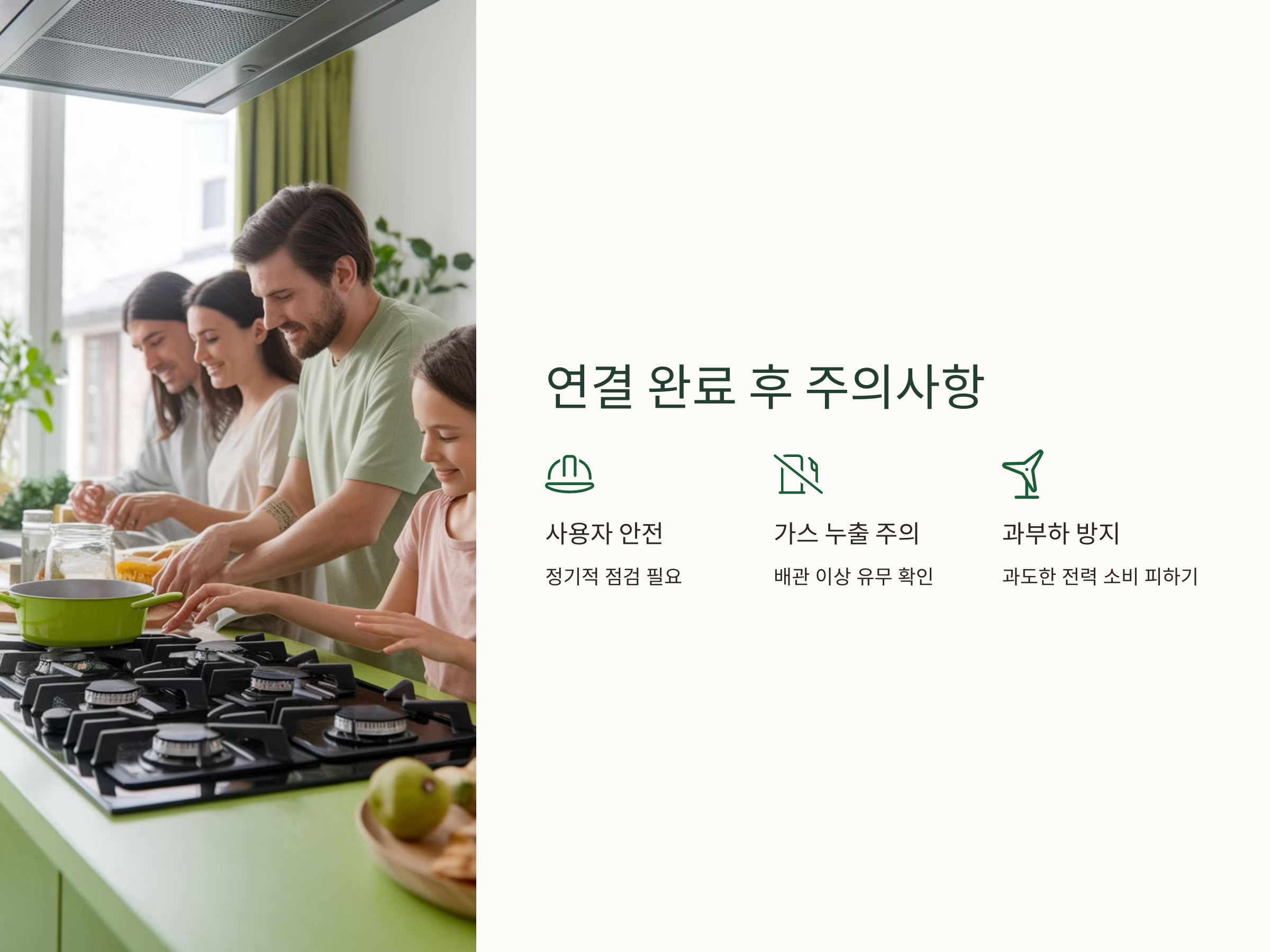 전기 및 가스 연결 완료 후 주의사항