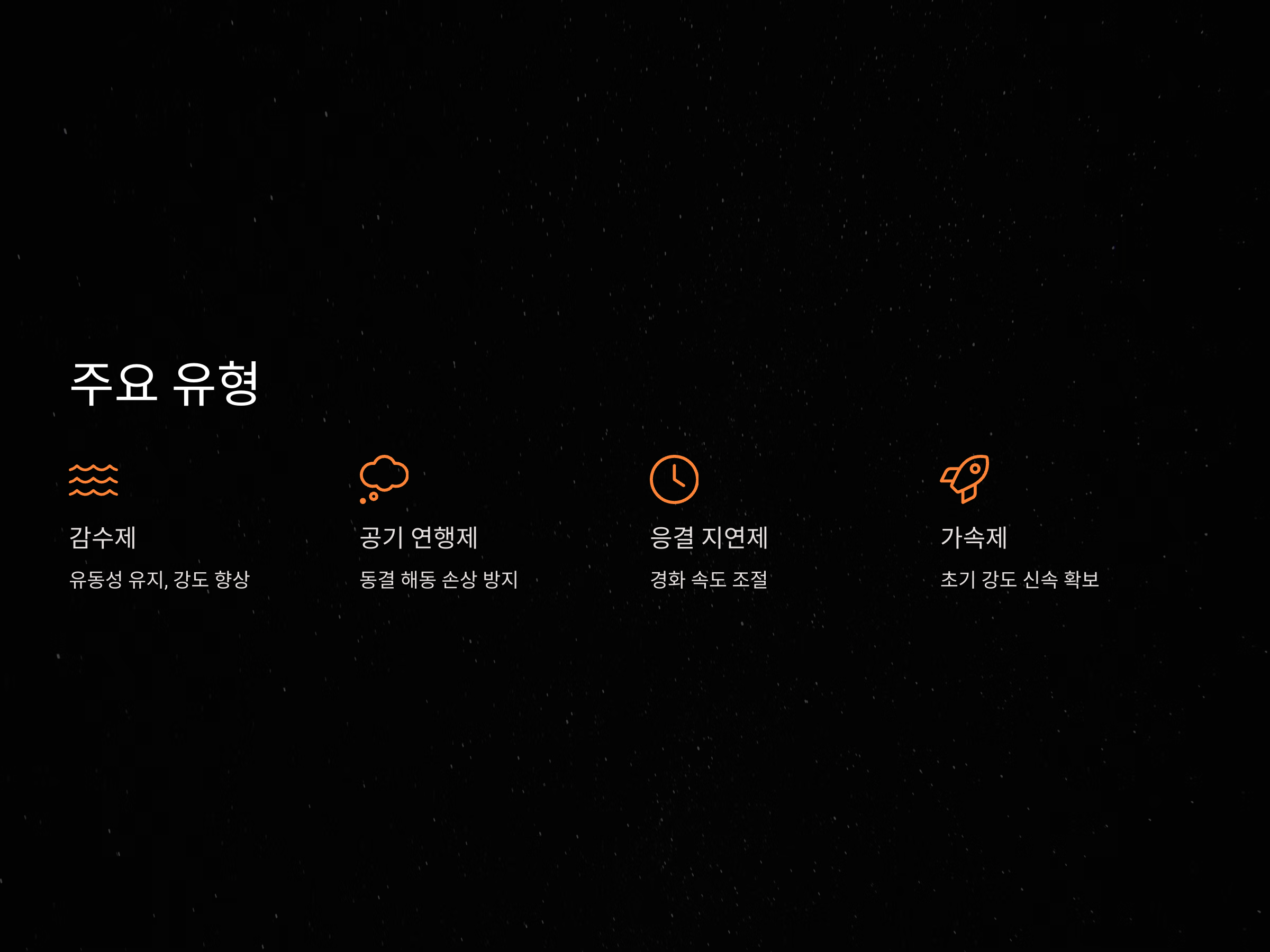 콘크리트의 경화 속도를 높여 초기 강도를 신속히 확보합니다. 주로 겨울철 공사에 사용됩니다.