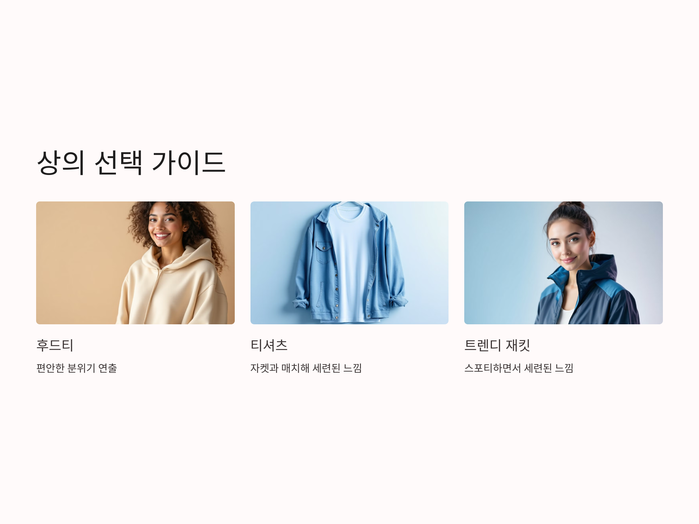 상의는 스포티하면서도 세련된 느낌을 줄 수 있는 후드티, 티셔츠, 또는 트렌디한 재킷이 좋습니다. 후드티는 특히 자연스럽고 편안한 분위기를 주어 고백하는 순간에도 긴장을 풀 수 있도록 도와줍니다. 티셔츠와 함께 운동화나 캐주얼한 자켓을 매치하면 조금 더 세련된 느낌을 줄 수 있습니다.