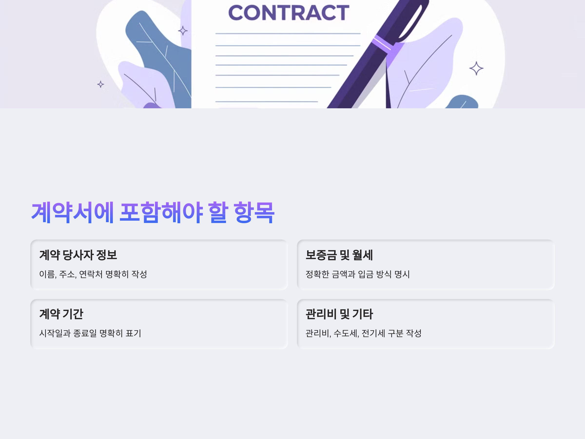 - 관리비 및 기타 비용: 관리비, 수도세, 전기세 등 기타 비용을 명확히 구분하여 작성합니다.
