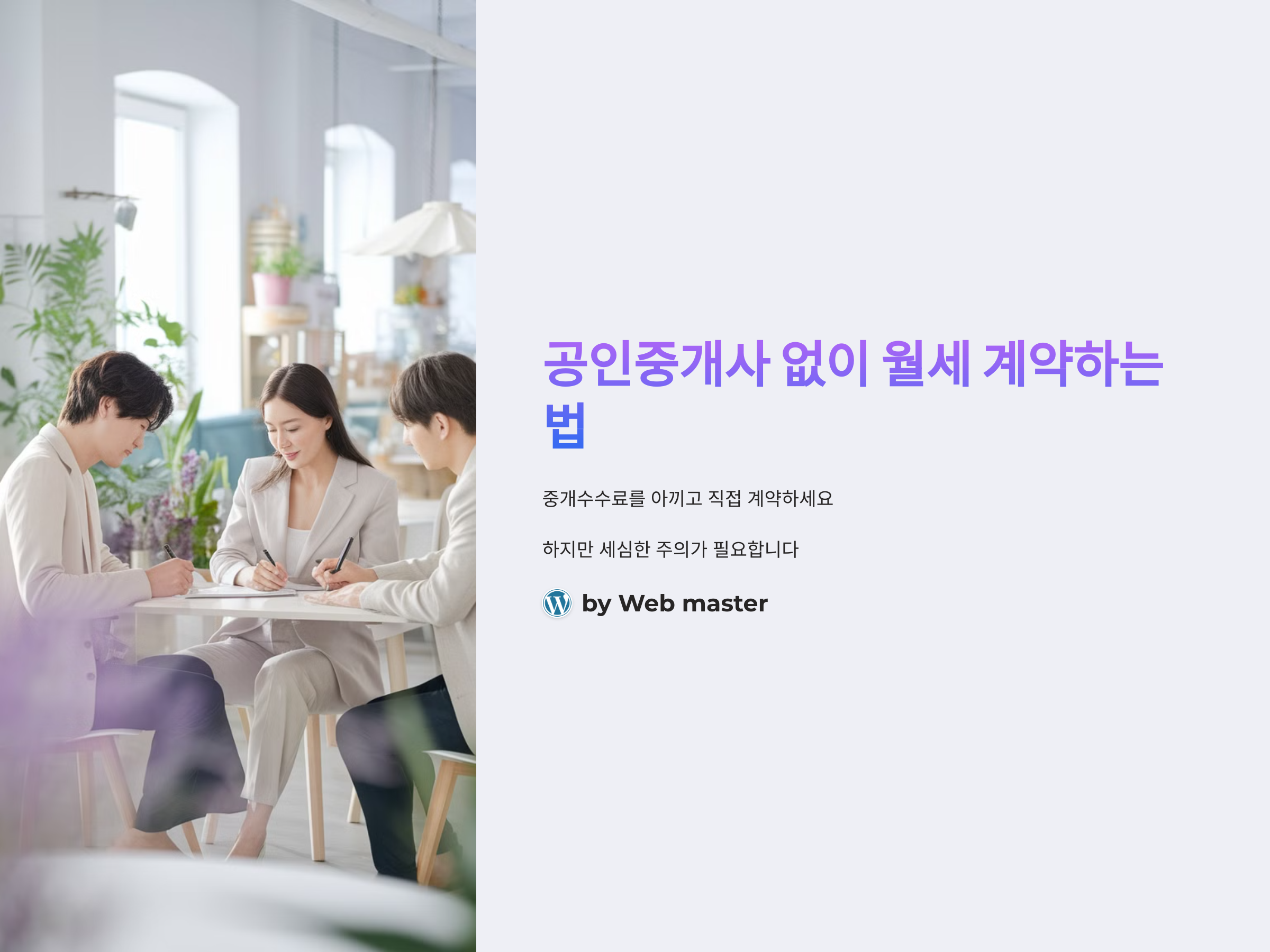 월세를 구하는 일이 예전보다 쉬워졌지만, 공인중개사 없이 직접 계약을 하려면 몇 가지 중요한 사항들을 잘 알아두는 것이 필수입니다. 공인중개사를 두지 않고 직접 계약을 하게 되면 중개수수료를 아낄 수 있지만, 그만큼 세심한 주의가 필요합니다. 자칫 잘못하면 예상치 못한 법적 문제나 금전적 손해를 입을 수 있기 때문에, 월세 계약을 진행하는 법을 제대로 익히고 넘어가는 것이 중요합니다. 이제 공인중개사 없이 월세 계약을 할 수 있는 방법을 하나씩 알아보겠습니다.