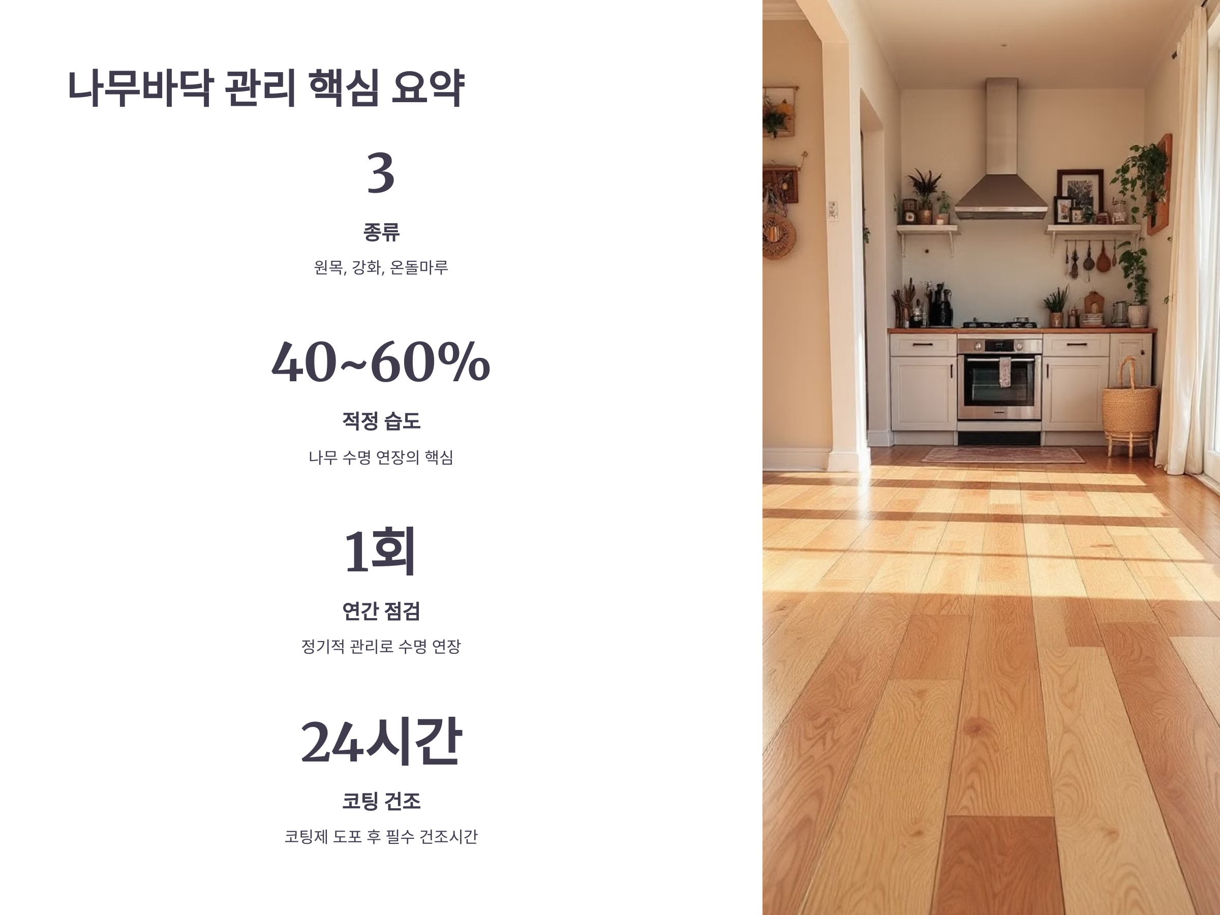 특히 겨울철 난방을 장시간 가동할 경우, 온돌 위 나무바닥은 열 스트레스를 많이 받게 되므로 온도조절과 습도관리를 병행해야만 장기적인 유지관리가 가능합니다.