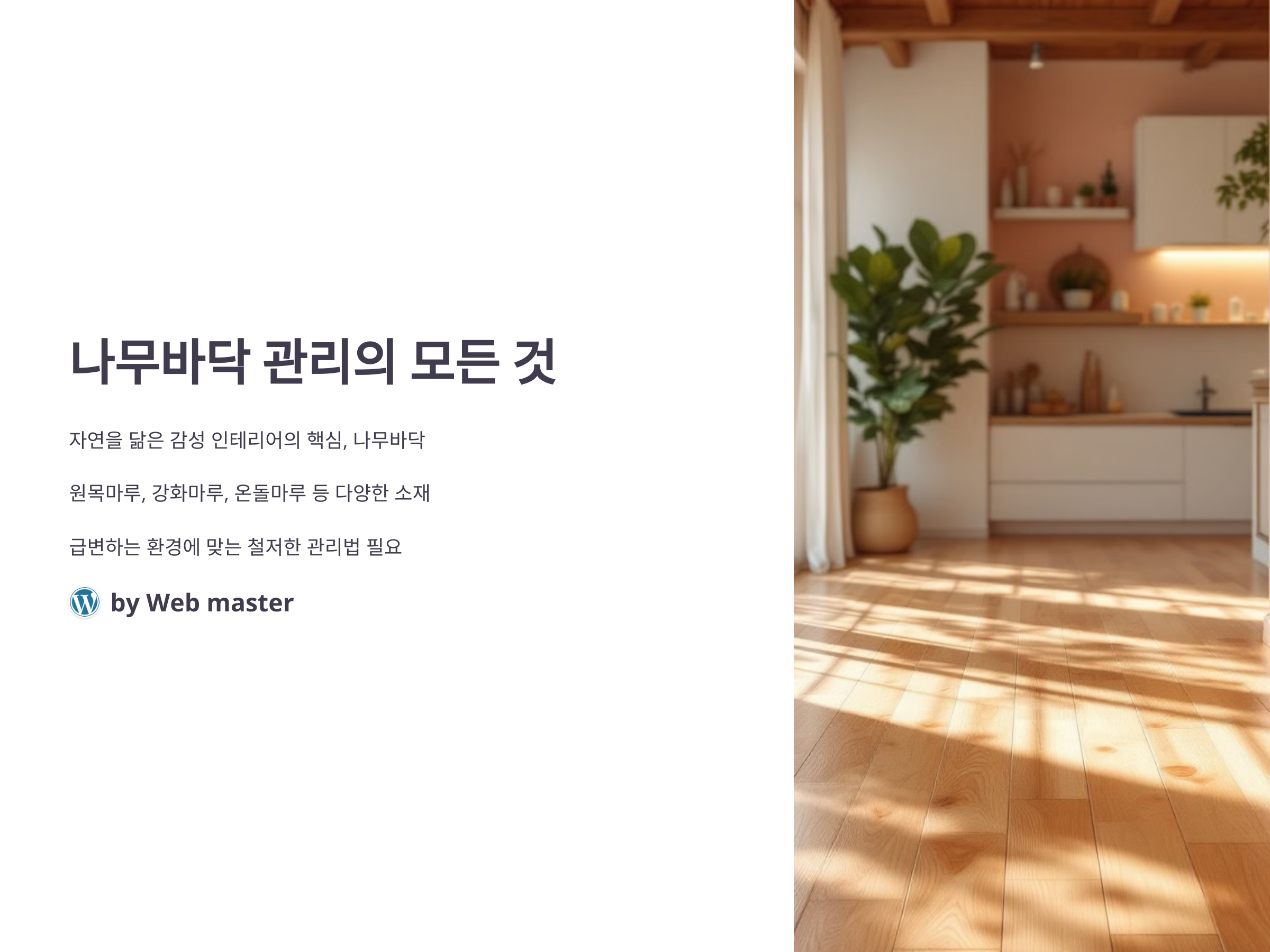 자연을 닮은 감성 인테리어의 핵심, 바로 나무바닥입니다. 하지만 그 따뜻함을 오래 간직하기 위해선 세심한 관리가 필요하죠. 최근에는 원목마루, 강화마루, 온돌마루 등 다양한 소재의 나무바닥이 등장하면서 관리법도 조금씩 달라지고 있습니다. 특히 요즘처럼 급변하는 날씨, 높은 실내 습도, 미세먼지 증가 등 환경 변화에 따라 나무바닥이 받는 스트레스도 커지고 있기에 철저한 관리법이 요구됩니다. 최근 이슈로는 천연 원목의 수급 불안정으로 인해 고가의 자재가 많아지고, 그에 따른 보존·관리의 필요성이 더욱 강조되고 있죠. 오늘은 이러한 트렌드를 반영해 나무바닥을 오래도록 새것처럼 유지하는 실질적인 방법과 실내 공기 질을 해치지 않으면서도 위생적으로 관리할 수 있는 꿀팁을 안내합니다.