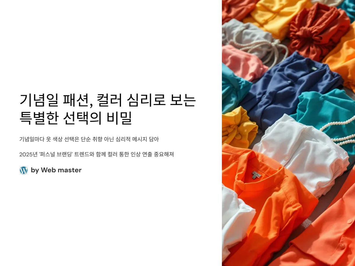 특히 2025년 들어 더욱 부각되고 있는 ‘퍼스널 브랜딩’ 트렌드와 맞물려, 컬러를 통한 인상 연출과 감정 조절은 기념일 룩 선택에도 주요한 기준이 되었습니다. 예를 들어 데이트날 입은 붉은 색 계열의 드레스는 단순한 매혹이 아니라, 자존감 상승과 자신감 표현의 상징일 수 있습니다. 이 글에서는 기념일마다 잘 어울리는 컬러와 그 심리적 효과, 그리고 스타일링 팁까지 풍부하게 다루어봅니다. 패션 선택이 곧 당신의 메시지가 될 수 있도록, 컬러의 숨겨진 힘을 만나보세요.
