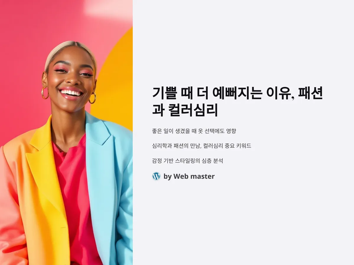 이제는 단순히 '잘 입는 것'보다 '나답게 입는 것'이 중요해졌습니다. 감정을 입는 시대, 기쁨을 입는 패션은 더 이상 일부 패션피플만의 선택이 아니라 누구나 실천할 수 있는 새로운 라이프스타일입니다. 기쁜 날, 조금 더 당당하게 웃고 싶다면 내 감정에 맞는 컬러를 선택해보세요. 그것만으로도 하루는 더 아름답게 변할 수 있습니다.