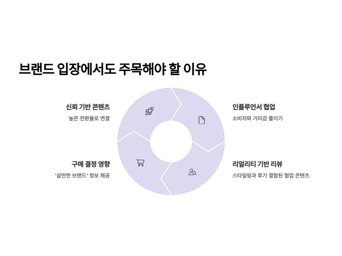 단순한 상품 광고보다는, 스타일링과 후기가 결합된 협업 콘텐츠가 전환율이 높습니다. 이를 통해 브랜드는 ‘리얼리티 기반 리뷰’를 확보하게 되고, 크리에이터는 신뢰 기반의 콘텐츠 자산을 얻게 됩니다. 이러한 윈윈 구조는 구독자에게는 '살만한 브랜드'를 알려주는 실질적인 정보로 작용합니다.