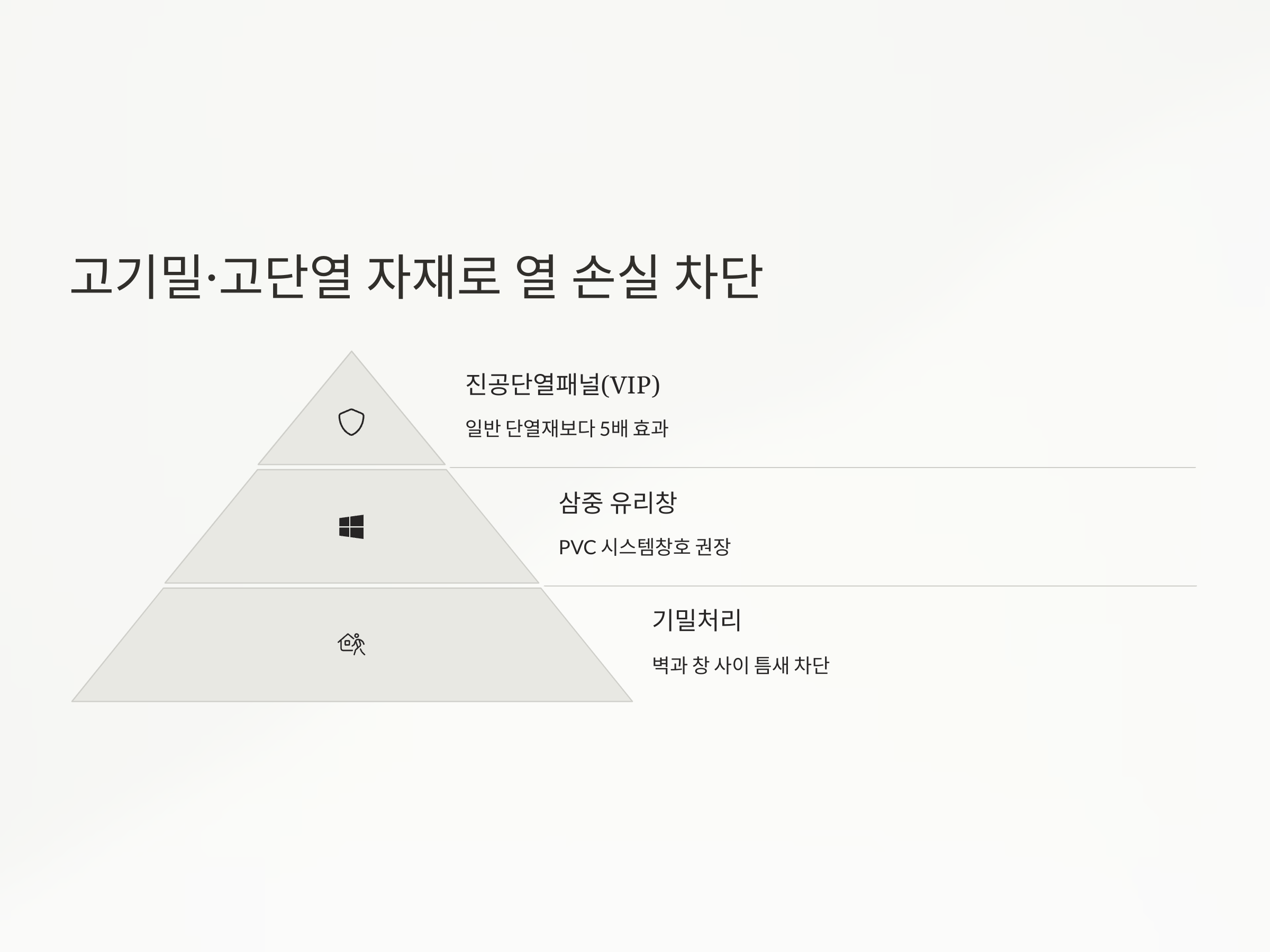 열 손실은 난방비 상승의 주범입니다. 단열재는 물론, 창호와 벽체, 지붕까지 전반적인 주택의 단열 성능이 중요합니다. 최근에는 열전도율이 낮은 '진공단열패널(VIP)'이나 '에어로젤' 같은 신소재도 등장해 일반 단열재보다 5배 이상의 단열 효과를 발휘합니다. 또한 창호는 삼중 유리창, 로이유리, 알루미늄 프레임보다는 PVC 시스템창호로 교체하는 것이 효율적입니다.