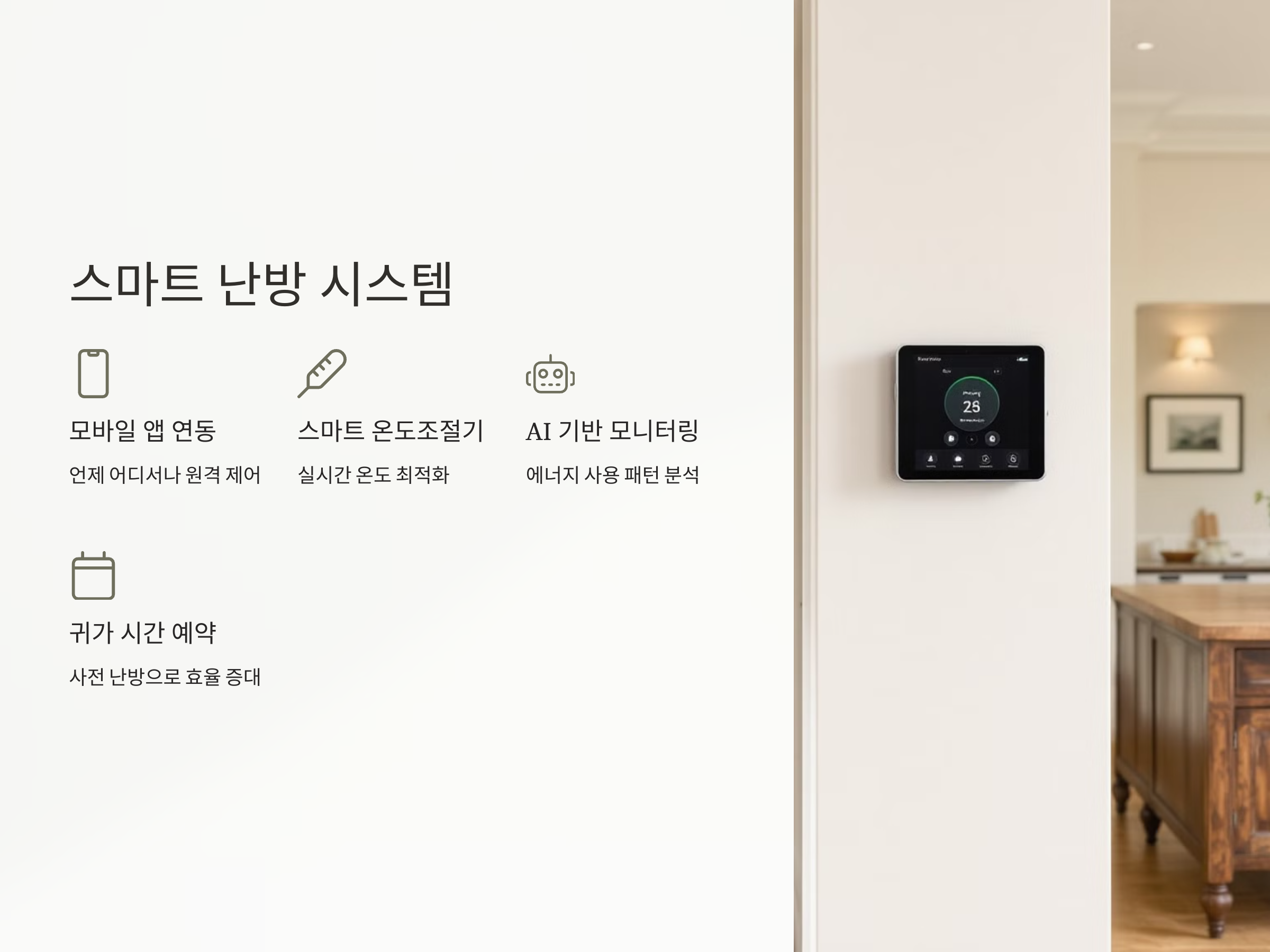 스마트 온도조절기, IoT 기반 보일러 컨트롤러, AI 기반 에너지 모니터링 시스템 등이 대표적입니다. 이 시스템들은 모바일 앱과 연동되어 언제 어디서나 제어가 가능하며, 에너지 사용 이력을 분석해 사용자에게 절약 포인트를 실시간으로 제시하기도 합니다. 초기 도입비는 있지만, 약 1~2년 내 회수 가능한 수준의 절감 효과를 제공하며, 정부의 '디지털 에너지전환 지원사업'을 통해 일부 보조금도 받을 수 있습니다.