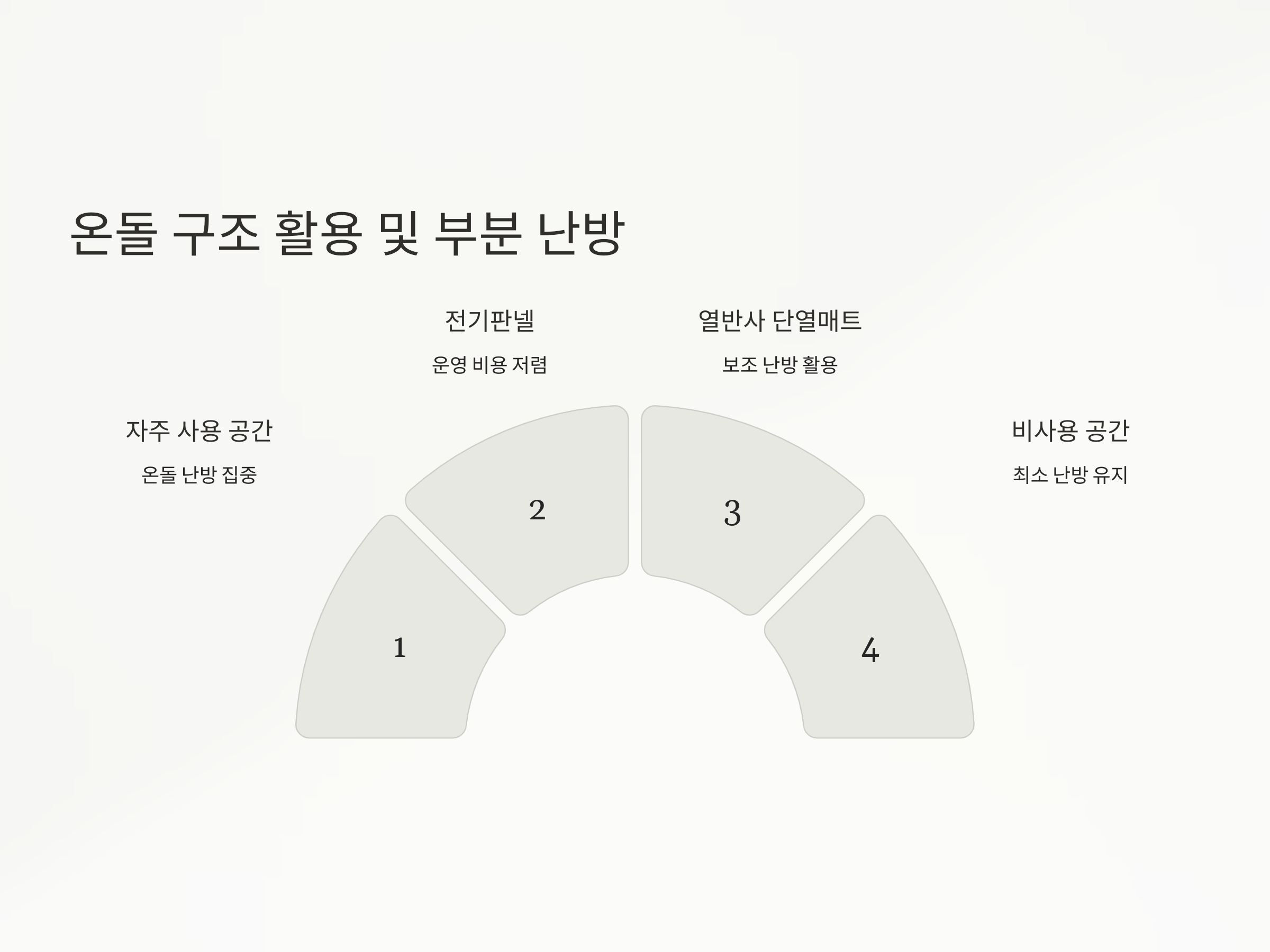 특히 한국 고유의 온돌 구조는 열전도율이 뛰어나 부분 난방에 매우 적합합니다. 최근에는 전기판넬을 활용한 온돌 시스템도 많이 도입되고 있는데, 초기 설치비는 있으나 운영 비용이 낮아 장기적으로 유리합니다. 거실이나 침실 등 체류 시간이 긴 공간 위주로 온돌 난방을 사용하고, 나머지는 열반사 단열매트를敎配置해 난방비를 크게 절감할 수 있습니다.