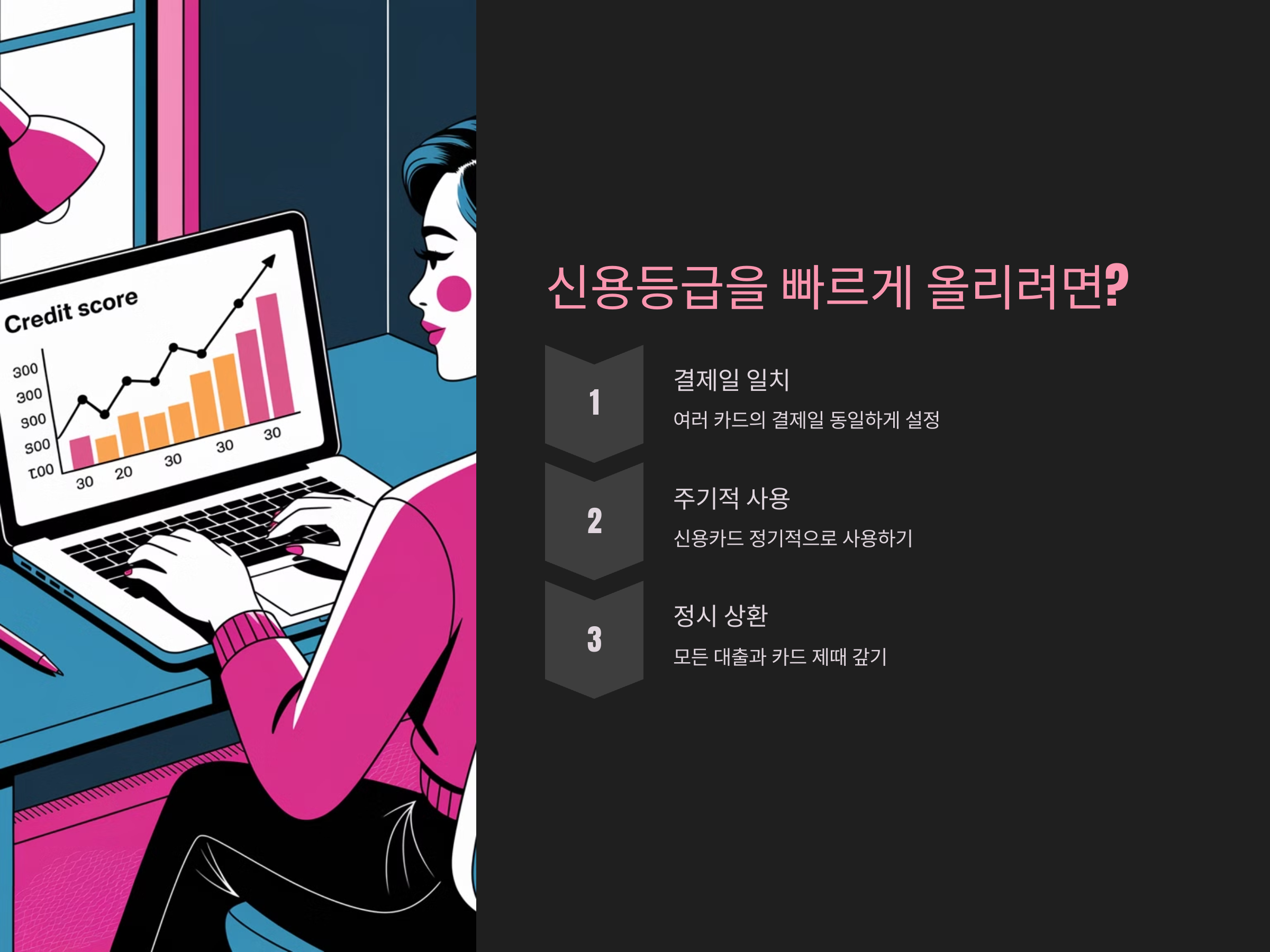 신용등급을 빠르게 올리기 위한 방법도 있습니다. 우선, 대출이나 신용카드 상환 기록을 정상적으로 유지하는 것 외에도 신용 점수를 올릴 수 있는 다른 방법들이 존재합니다.