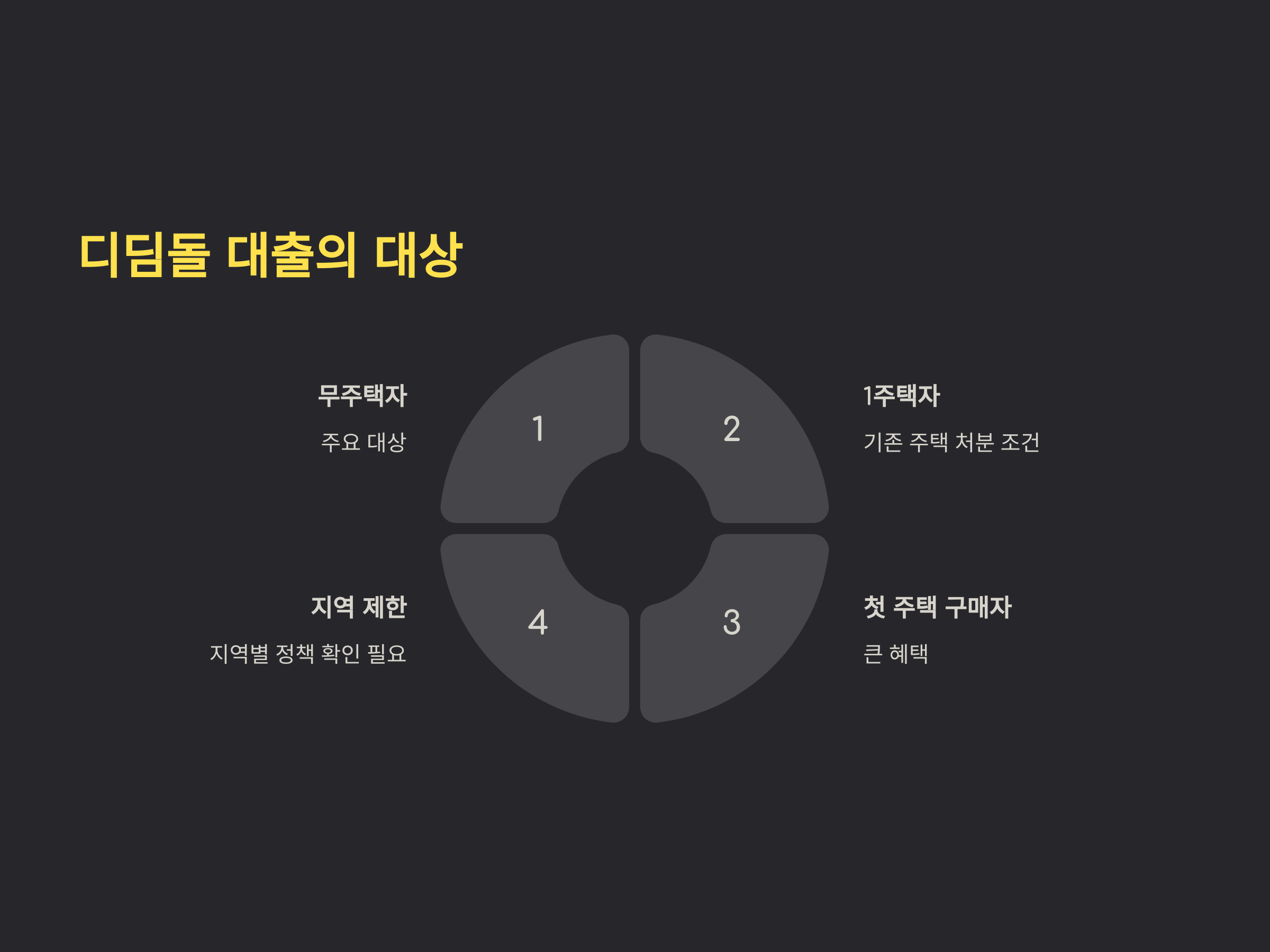 디딤돌 대출은 그 자체로 저금리 대출을 제공하는데, 이는 특히 첫 주택을 구매하는 사람들에게 큰 혜택이 됩니다. 또한, 대출을 받기 위해선 주택을 구입할 지역에 대한 제한도 있을 수 있으므로, 이 점을 고려하여 지역별 정책을 잘 살펴봐야 합니다.