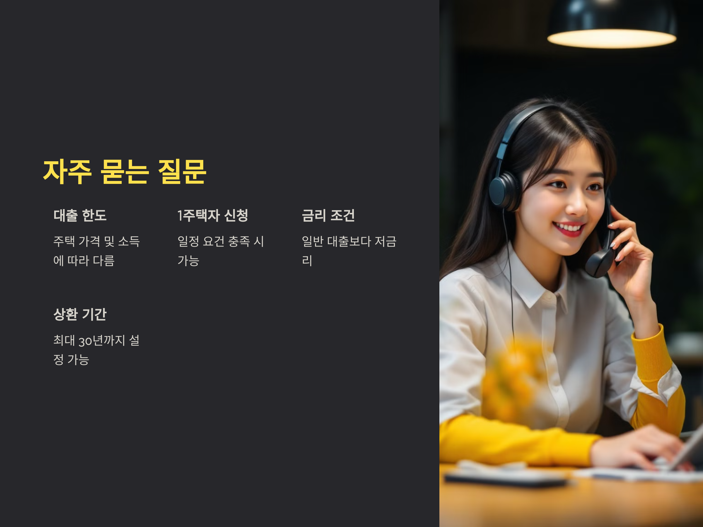 상환 기간도 최대 30년까지 설정이 가능하여, 월 상환금 부담을 줄일 수 있습니다. 하지만, 대출을 장기적으로 갚아야 하기 때문에, 상환 계획을 세밀하게 작성하는 것이 중요합니다.