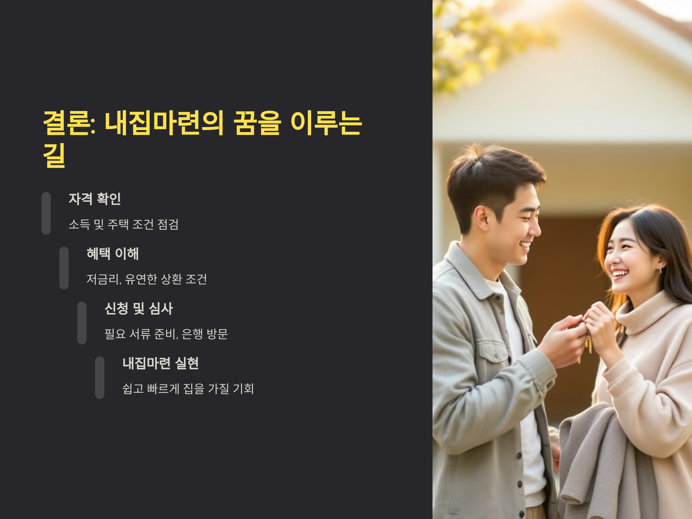 디딤돌 대출은 내집마련을 꿈꾸는 사람들에게 실질적인 도움을 주는 대출 제도입니다. 자격 요건만 잘 충족하면, 저금리로 안정적인 대출을 받을 수 있으며, 상환 기간과 조건도 유연하게 설정되어 많은 혜택을 누릴 수 있습니다. 내 집 마련을 위한 첫걸음을 떼고자 한다면, 디딤돌 대출을 통해 좀 더 쉽고 빠르게 집을 가질 수 있는 기회가 될 것입니다.