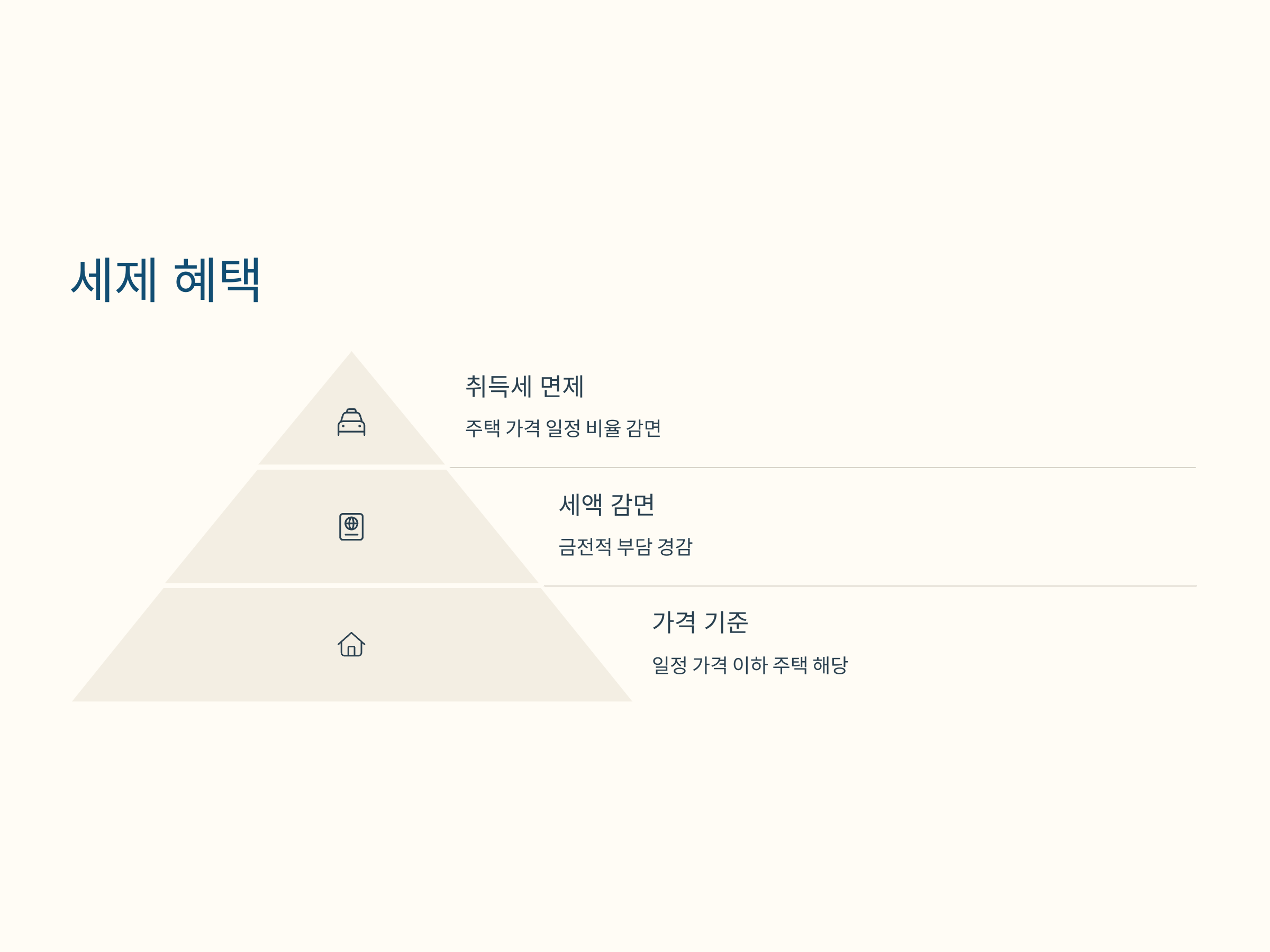 생애 최초로 주택을 구입하는 사람들에게 가장 큰 혜택 중 하나는 세제 혜택입니다. 주택을 처음 구매하는 사람에게는 주택 취득세가 면제되는 혜택이 주어지기도 합니다. 취득세는 주택을 구입할 때 발생하는 주요 세금 중 하나로, 주택 가격의 일정 비율로 부과됩니다. 하지만 생애 최초 주택 구매자에게는 이 취득세를 면제하거나, 세액을 크게 낮추는 지원을 받을 수 있어 금전적인 부담을 줄일 수 있습니다.