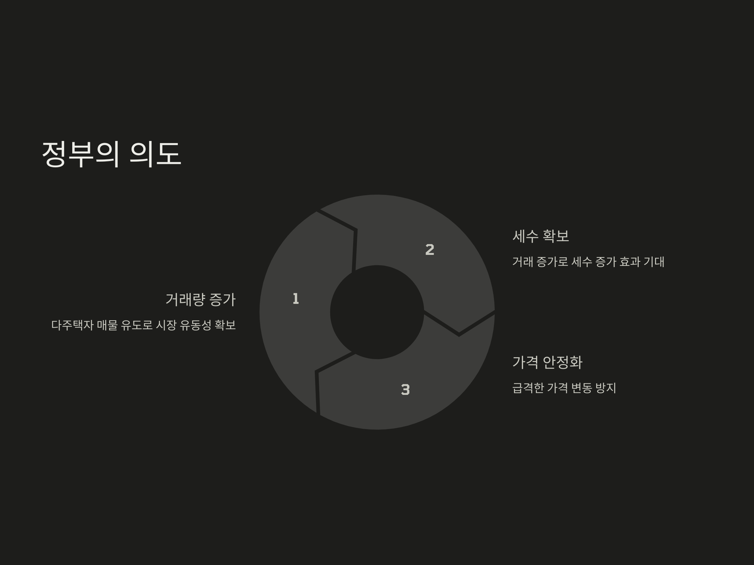 - 거래량 증가 유도: 다주택자들이 매물을 내놓도록 하여 시장 유동성 확보