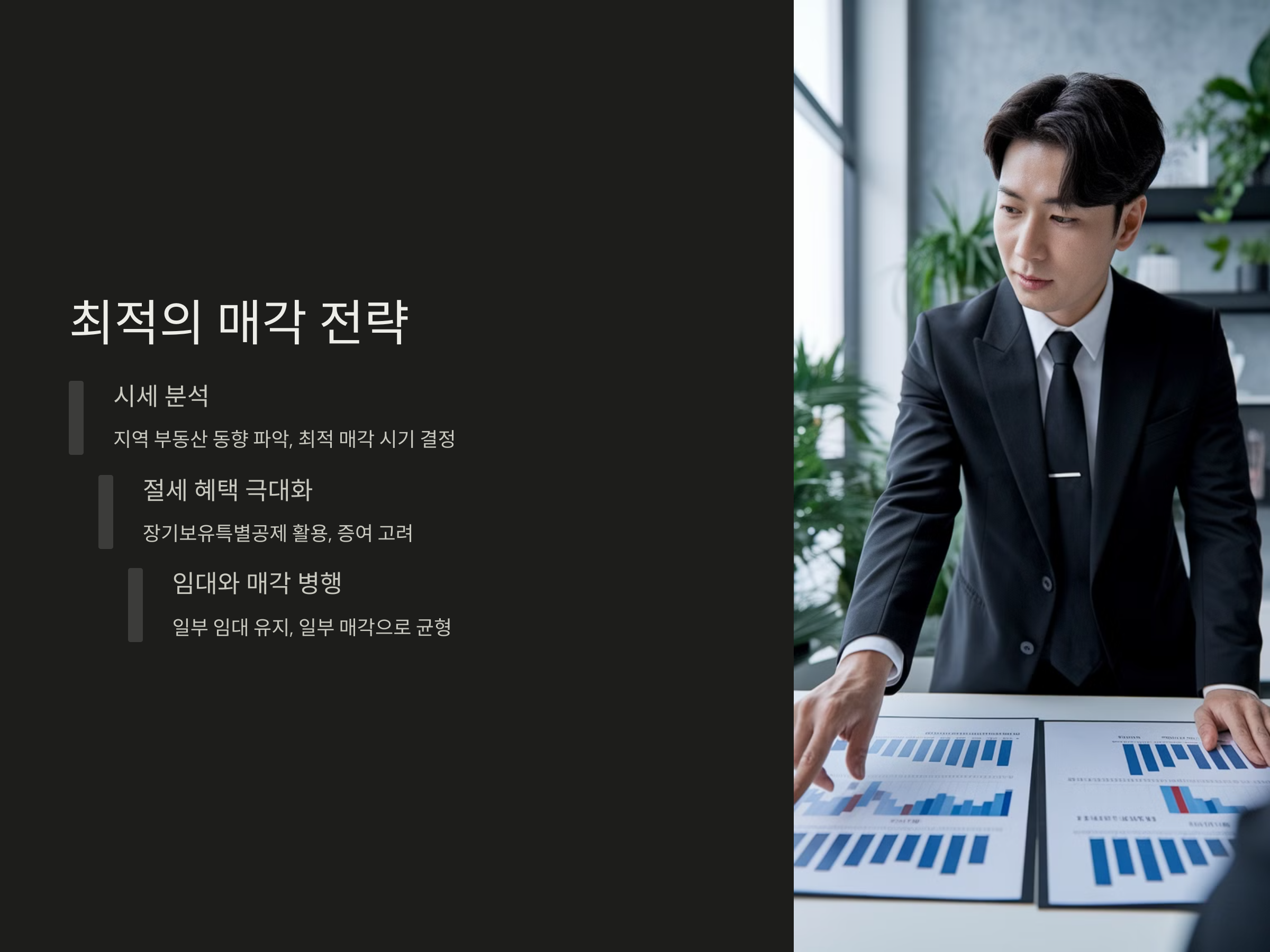 - 일부 주택은 보유하여 임대소득을 유지하고, 일부는 매각하여 세금 부담을 줄이는 방식도 고려할 수 있습니다.