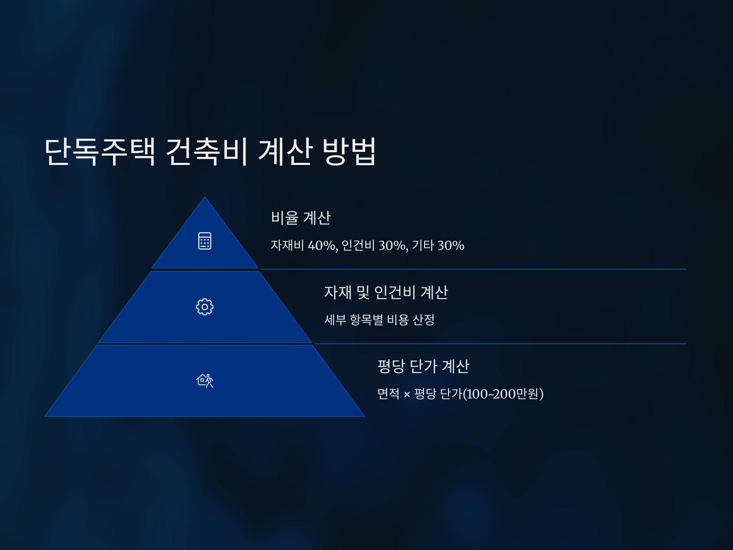 단독주택의 건축비를 계산하는 방식은 여러 가지가 있습니다. 가장 일반적인 방법은 평당 단가를 기준으로 계산하는 것입니다. 이 외에도 건축에 필요한 자재와 인건비를 세부적으로 나누어 계산하는 방법도 있습니다.