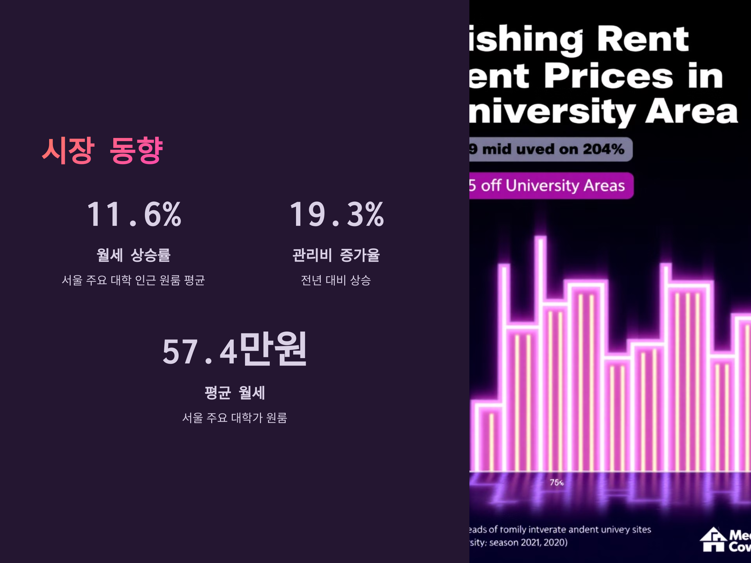 서울 주요 대학가의 원룸 평균 월세는 전년 대비 11.6% 상승하여 57만 4천 원을 기록하였으며, 관리비도 19.3% 증가하여 평균 7만 2천 원에 달했습니다. citeturn0search15