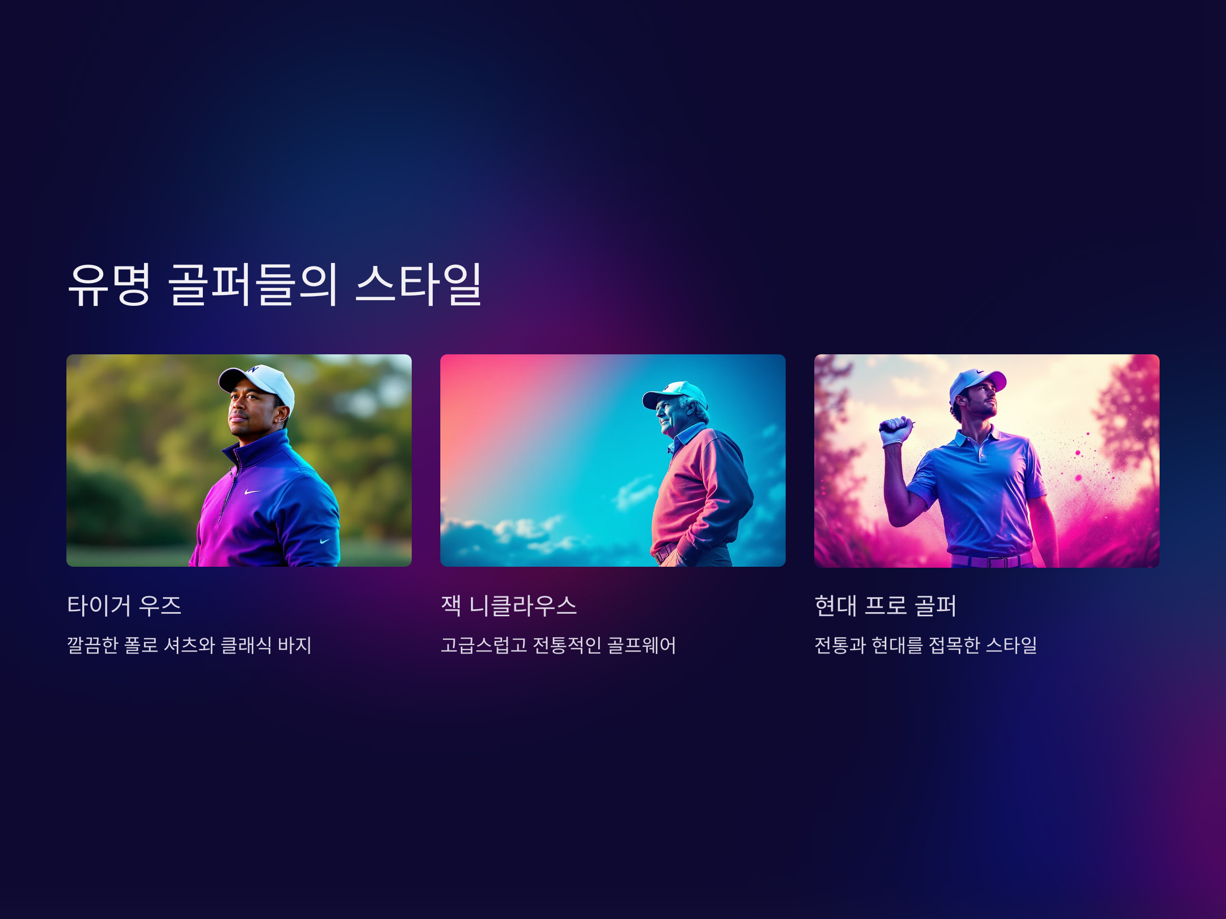 전통 골프웨어는 많은 유명 골퍼들에게 사랑받고 있습니다. 특히 타이거 우즈와 같은 전설적인 선수들은 클래식한 스타일의 골프웨어를 자주 착용하며, 그들의 스타일은 많은 골퍼들에게 영향을 미칩니다. 타이거 우즈는 깔끔한 폴로 셔츠와 클래식한 색조의 바지를 자주 입고, 스타일과 기능성을 모두 고려한 룩을 선보입니다. 이러한 스타일은 많은 골퍼들에게 영감을 주며, 전통적인 골프웨어에 대한 관심을 더욱 높이고 있습니다.