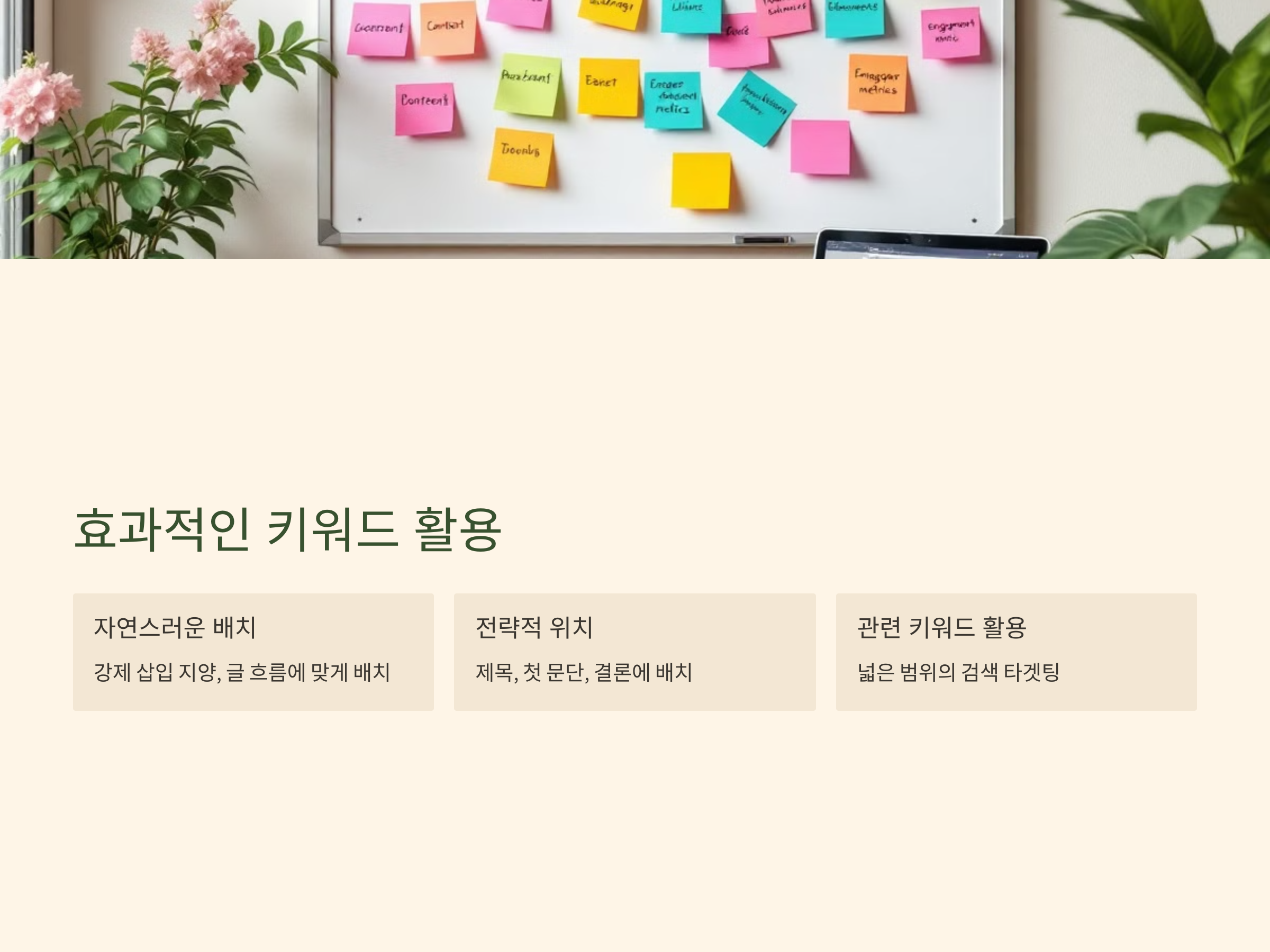 키워드는 SEO에서 중요한 역할을 합니다. 하지만 키워드를 지나치게 반복하거나 강제로 삽입하는 것은 오히려 독자 경험을 해칠 수 있습니다. 중요한 것은 자연스럽고 유용한 방법으로 키워드를 포함하는 것입니다. 예를 들어, 글의 흐름에 맞춰 키워드를 자연스럽게 배치하거나, 관련된 키워드를 사용하여 더 넓은 범위의 검색을 타겟팅할 수 있습니다.