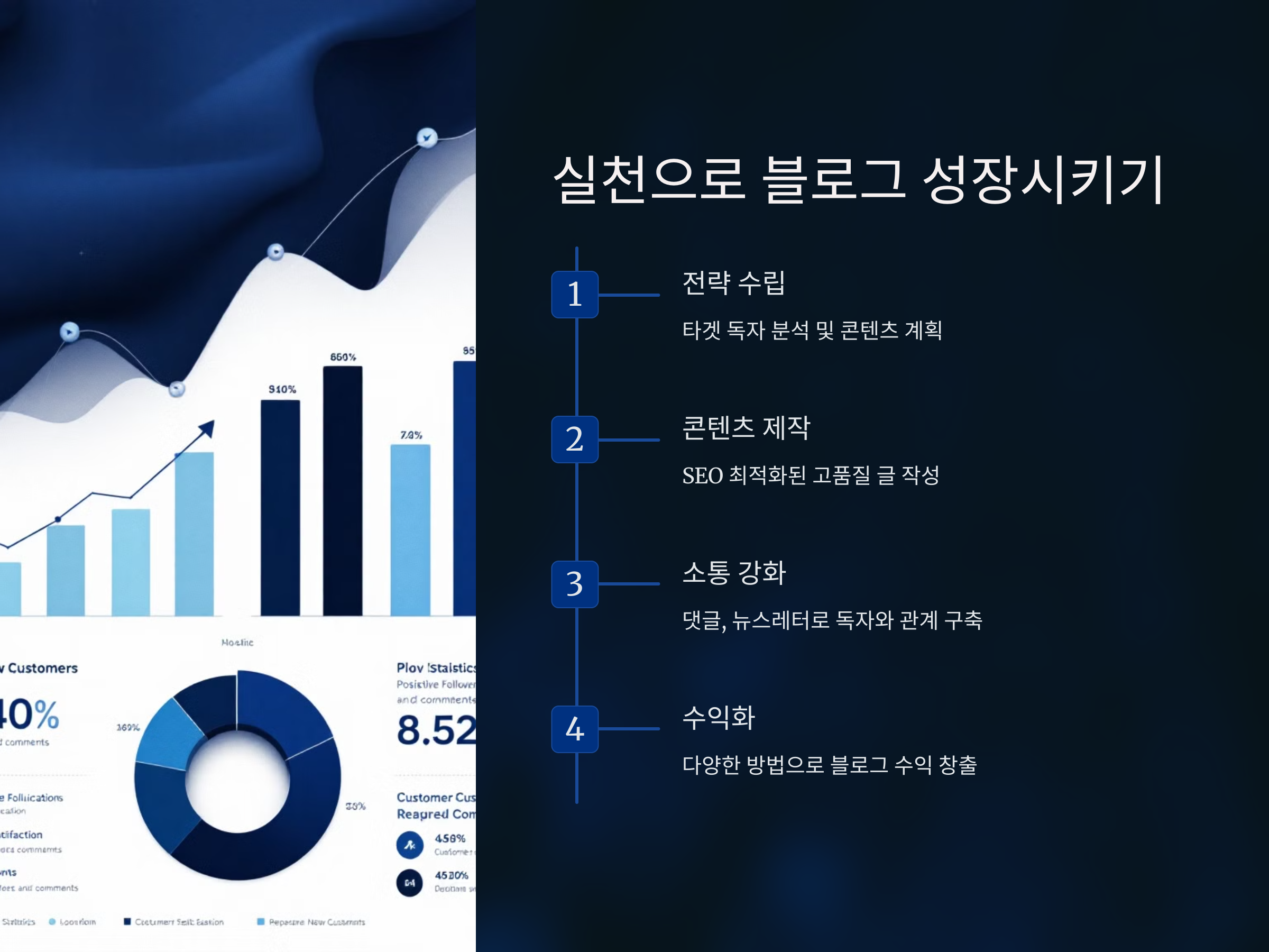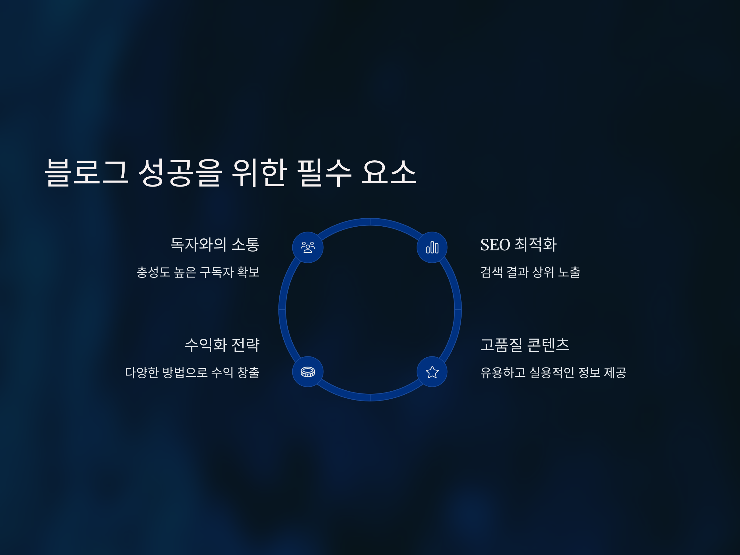 결국, 블로그 성공의 열쇠는 독자와의 소통, SEO 최적화, 고품질 콘텐츠 제공, 그리고 수익화 전략입니다. 이 모든 요소들이 잘 맞물려야 블로그가 성장하고, 성공적인 블로그 운영이 가능합니다. 이를 통해 여러분의 블로그가 더 많은 방문자를 끌어들이고, 수익을 창출할 수 있을 것입니다.