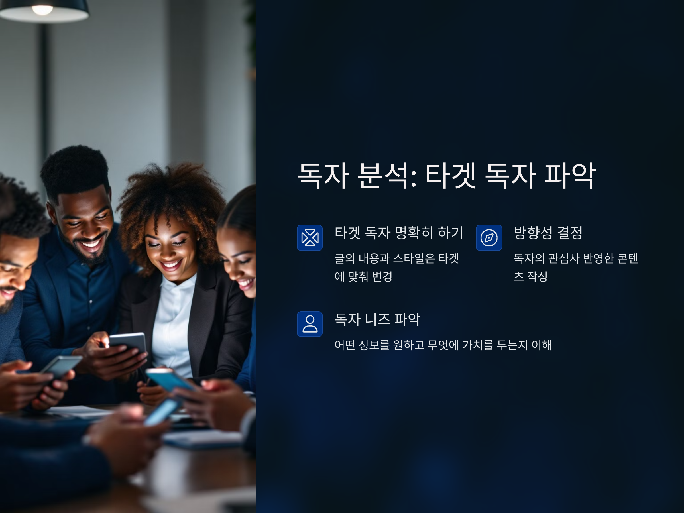 블로그 글쓰기를 시작하기 전에 가장 중요한 첫 번째 단계는 바로 독자 분석입니다. 여러분이 누구에게 글을 쓰고 있는지를 명확히 아는 것이 중요합니다. 글의 내용과 스타일은 타겟 독자에 따라 달라져야 하며, 이 점을 잘 이해하는 것이 블로그의 성공적인 운영을 위한 첫 걸음입니다.