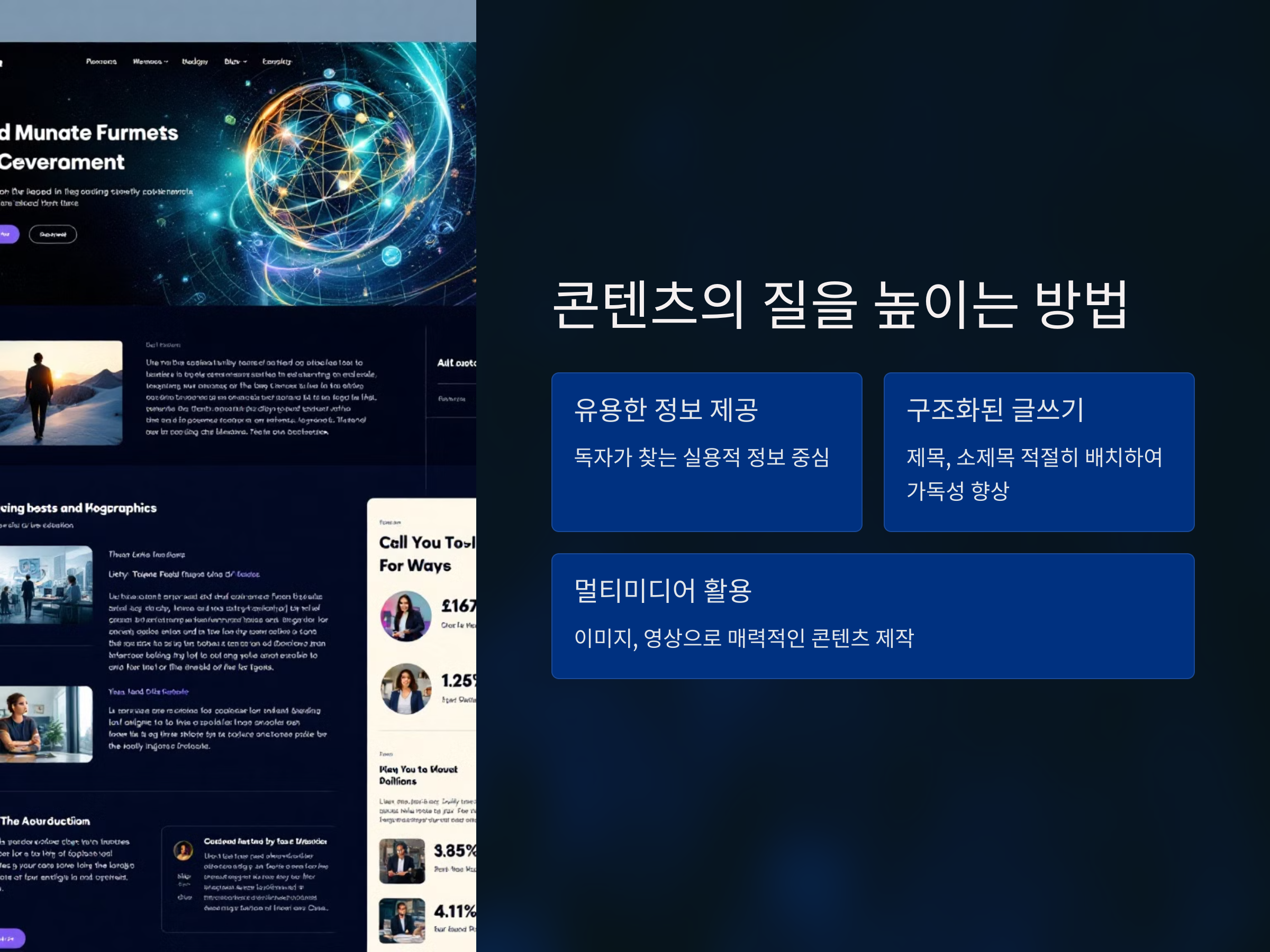 SEO 최적화뿐만 아니라, 콘텐츠의 질 역시 독자들에게 큰 영향을 미칩니다. 고품질 콘텐츠를 제공하는 것이 독자들의 재방문을 유도하고, 블로그의 성장에 중요한 역할을 합니다.