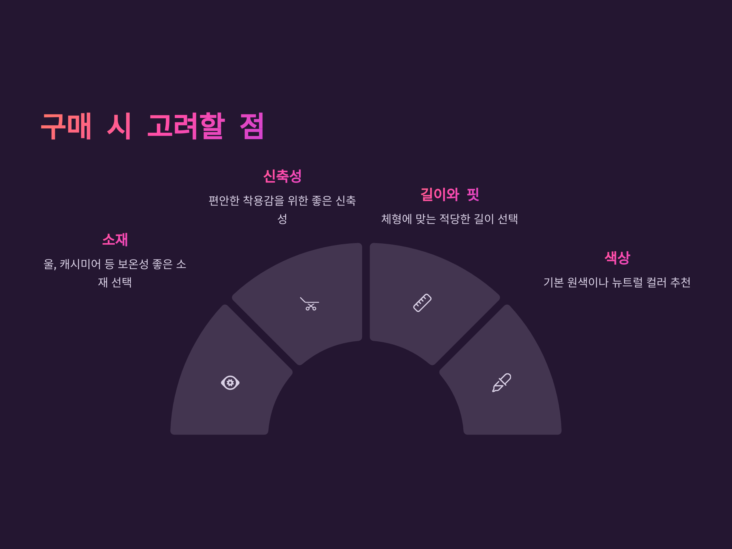 둘째, 길이와 핏을 고려해야 합니다. 너무 길거나 너무 짧은 니트는 오히려 부담스러울 수 있습니다. 체형에 맞는 적당한 길이와 핏을 선택하는 것이 중요합니다. 예를 들어, 상체가 크신 분들은 긴 니트를 선택하면 몸매가 길어 보이는 효과를 줄 수 있습니다.