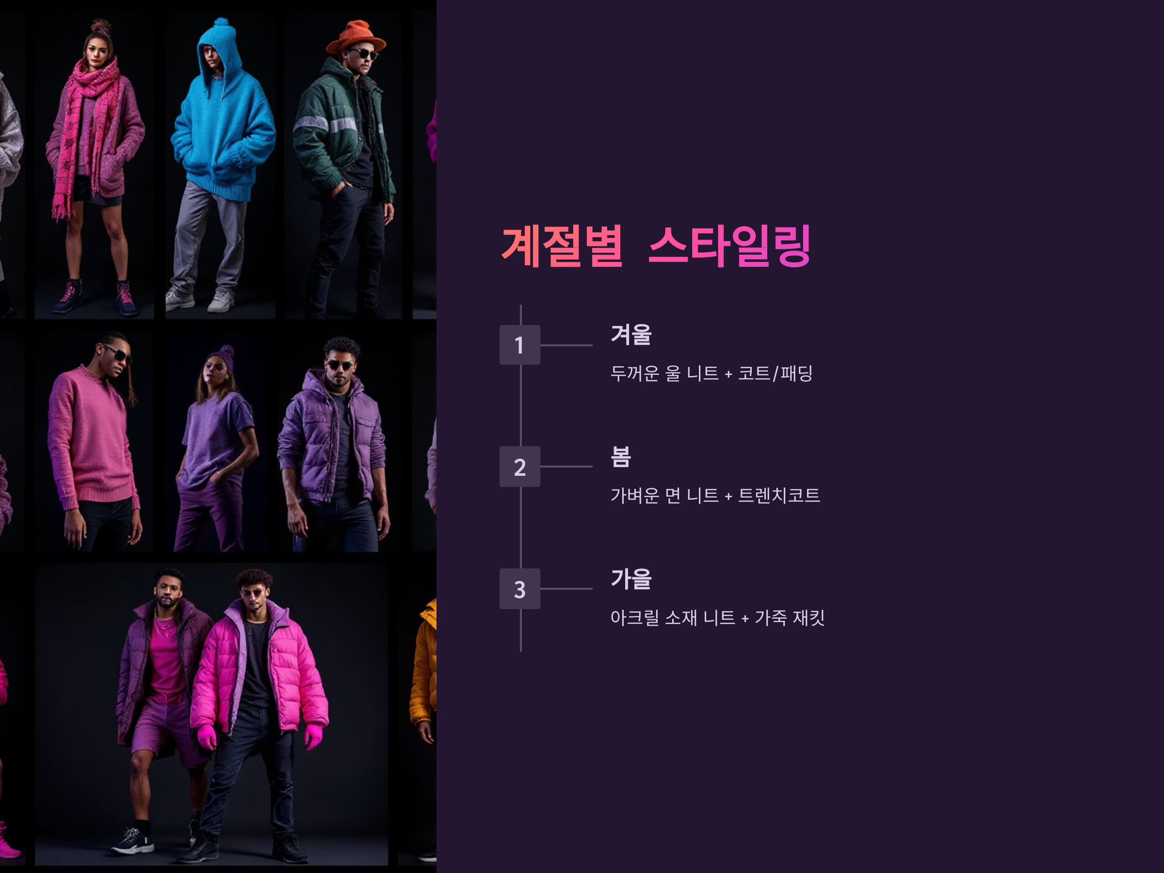 빅사이즈 니트는 겨울뿐만 아니라 봄, 가을에도 활용 가능한 아이템입니다. 계절에 맞는 스타일링 팁을 알아보겠습니다.