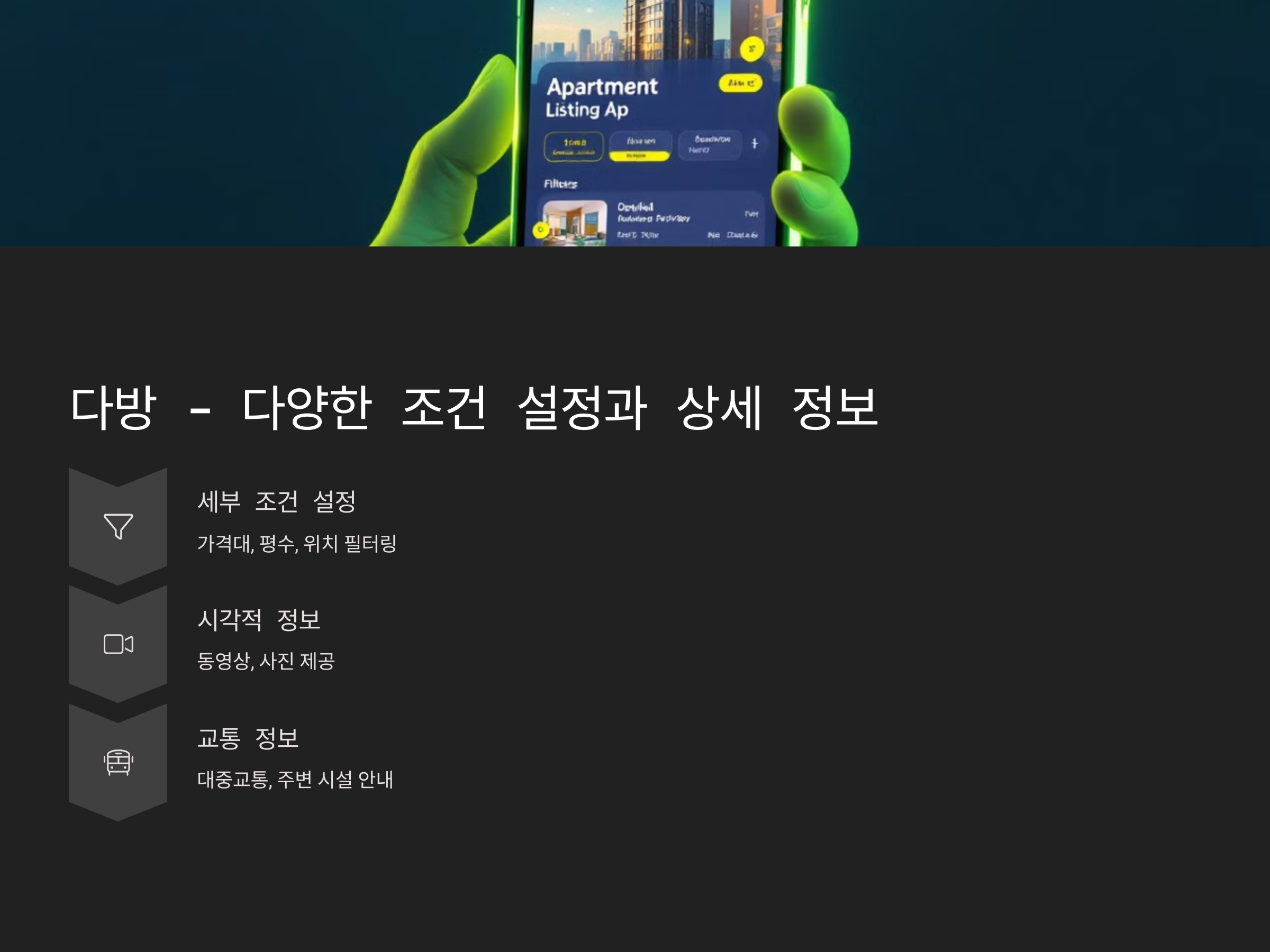다양한 조건 설정과 상세 정보 제공 - 다방