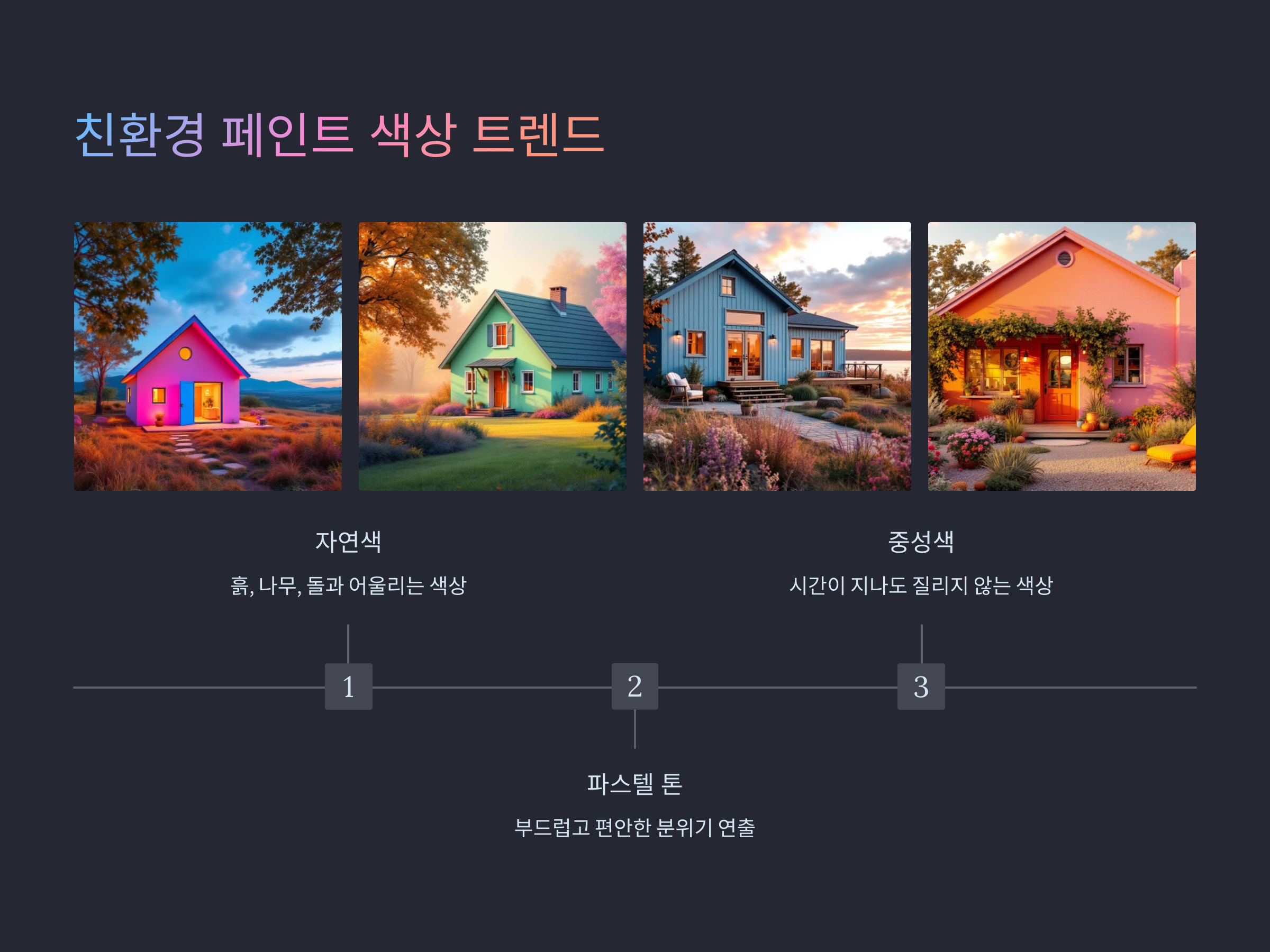 전원주택에 적합한 친환경 페인트는 내구성이 뛰어나고 자연의 아름다움과 잘 어우러져야 합니다. 여기에 몇 가지 제품을 추천드립니다.