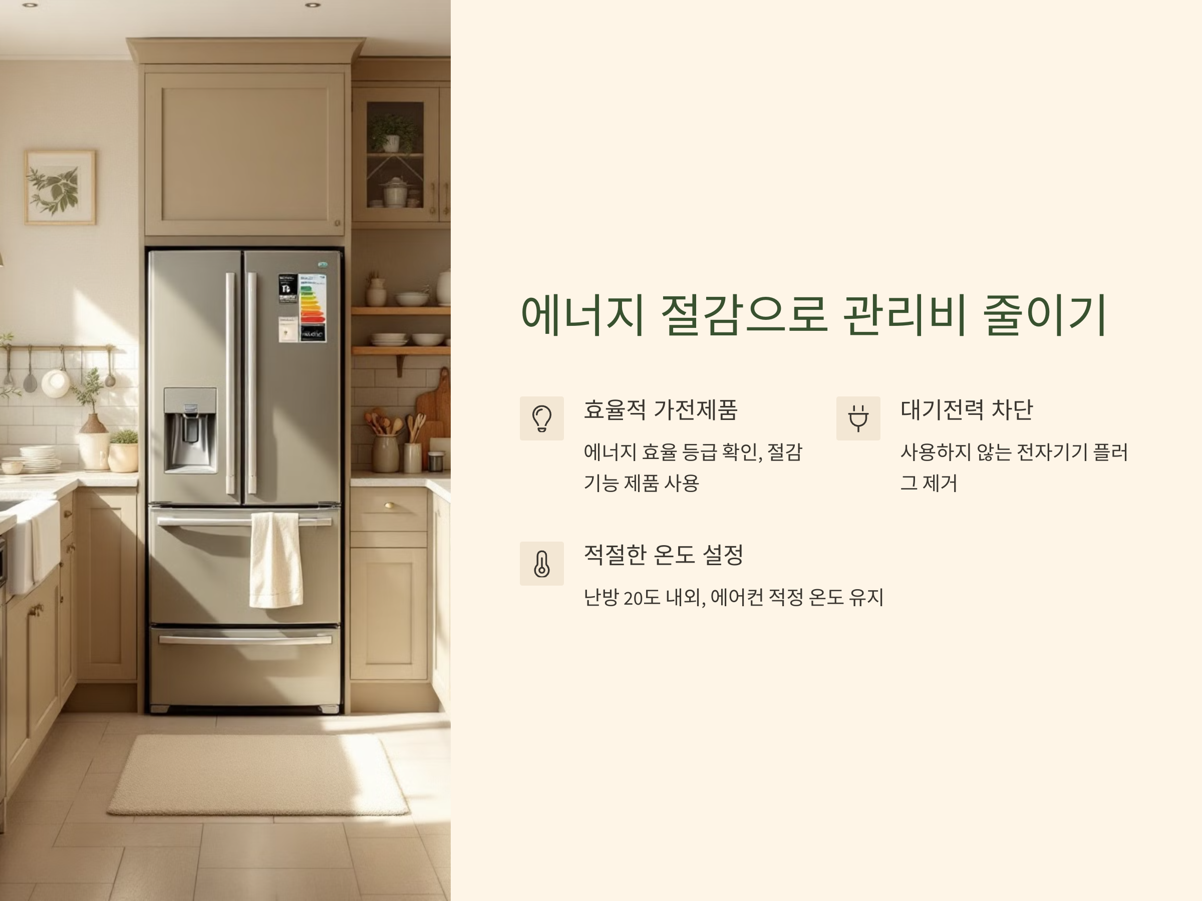 가전제품의 에너지 효율 등급을 확인하고, 효율성이 높은 제품으로 교체하는 것이 중요합니다. 예를 들어, 전기차단기나 냉장고, 세탁기 등의 기기에서 에너지 절감 기능이 있는 제품을 사용하면 매월 관리비를 낮출 수 있습니다. 또한, 사용하지 않는 전자기기는 반드시 끄거나 플러그를 빼는 것이 좋습니다. 전자기기가 대기 상태일 때도 전기를 소모하기 때문에 이러한 작은 습관만으로도 비용을 절감할 수 있습니다.