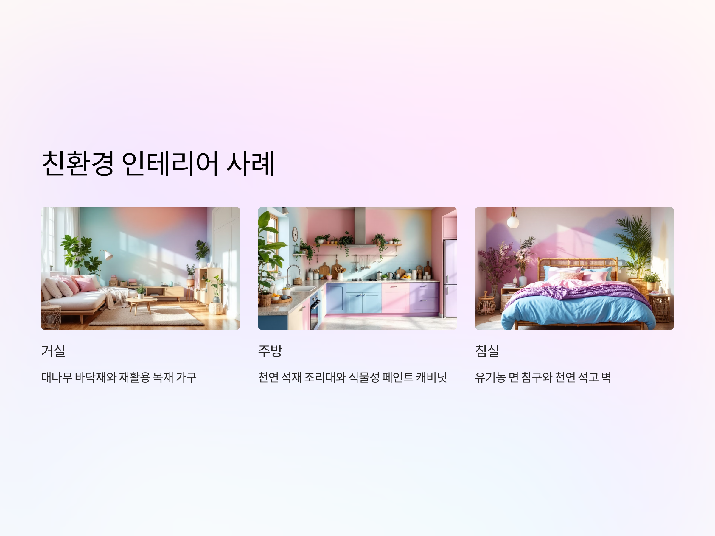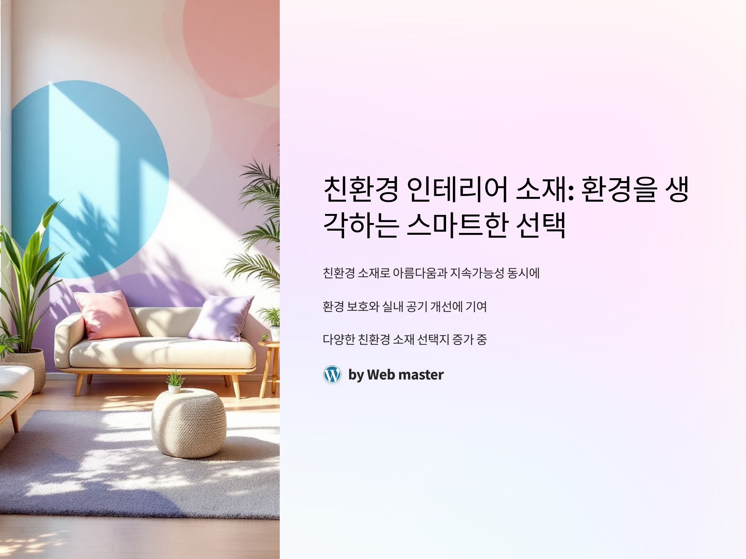 지금부터 친환경 인테리어를 선택하고, 나만의 지속 가능한 공간을 만들어 보세요. 더 나은 집과 환경을 위한 첫걸음이 될 것입니다.