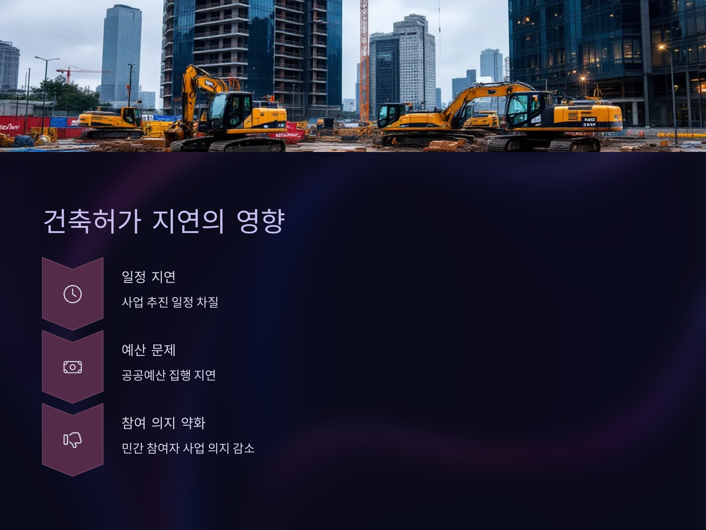 건축허가의 지연은 도시재생사업의 추진 일정과 예산 집행에 직결됩니다. 허가 절차가 지연되면 공공예산의 집행도 미뤄지고, 민간 참여자들의 사업 의지도 약화됩니다. 실제로 서울시의 한 도시재생 시범사업에서는 건축허가가 1년 가까이 지연되면서 사업예산 30억 원이 이월되는 사태가 발생했습니다.