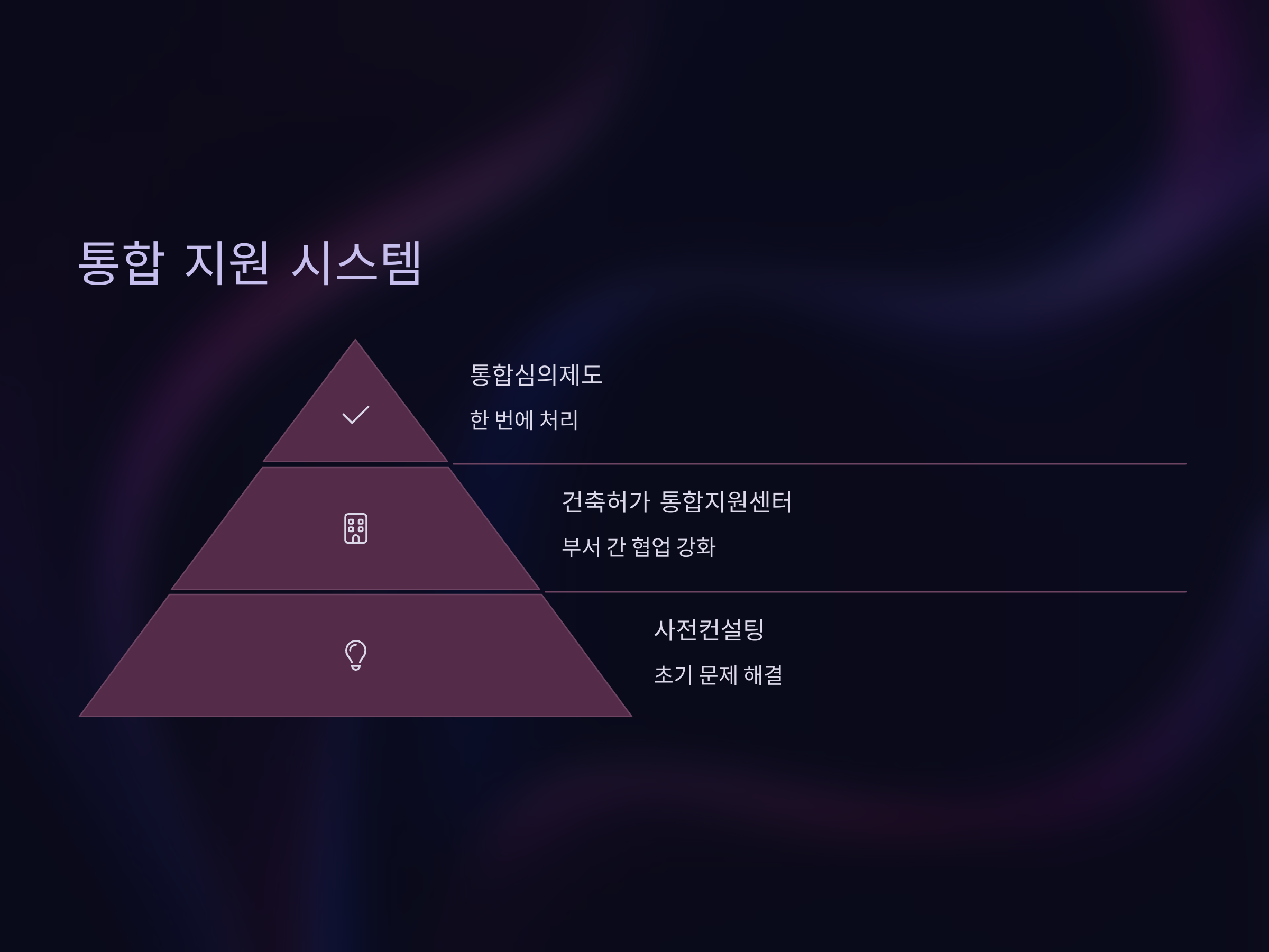 이러한 문제를 해결하기 위해 국토부는 도시재생사업 전용 ‘건축허가 통합지원센터’를 설립해, 사전설계검토 및 부서 간 협업을 강화하고 있습니다. 또한, ‘통합심의’ 제도를 통해 건축허가, 도시계획 변경, 경관심의 등을 한 번에 처리할 수 있는 절차도 확대되고 있습니다.