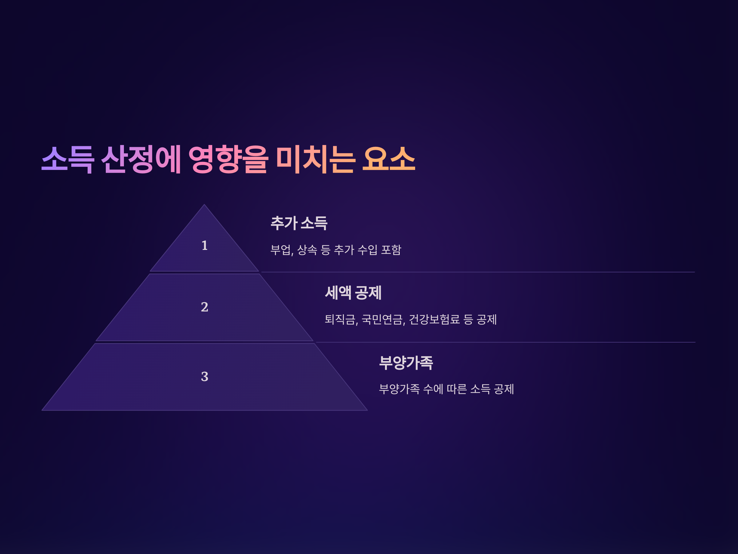 소득 산정에 영향을 미치는 요소들은 다양한 조건에 따라 달라질 수 있습니다. 특히 중요한 요소는 바로 "부양가족"과 "기타 수입원"입니다.