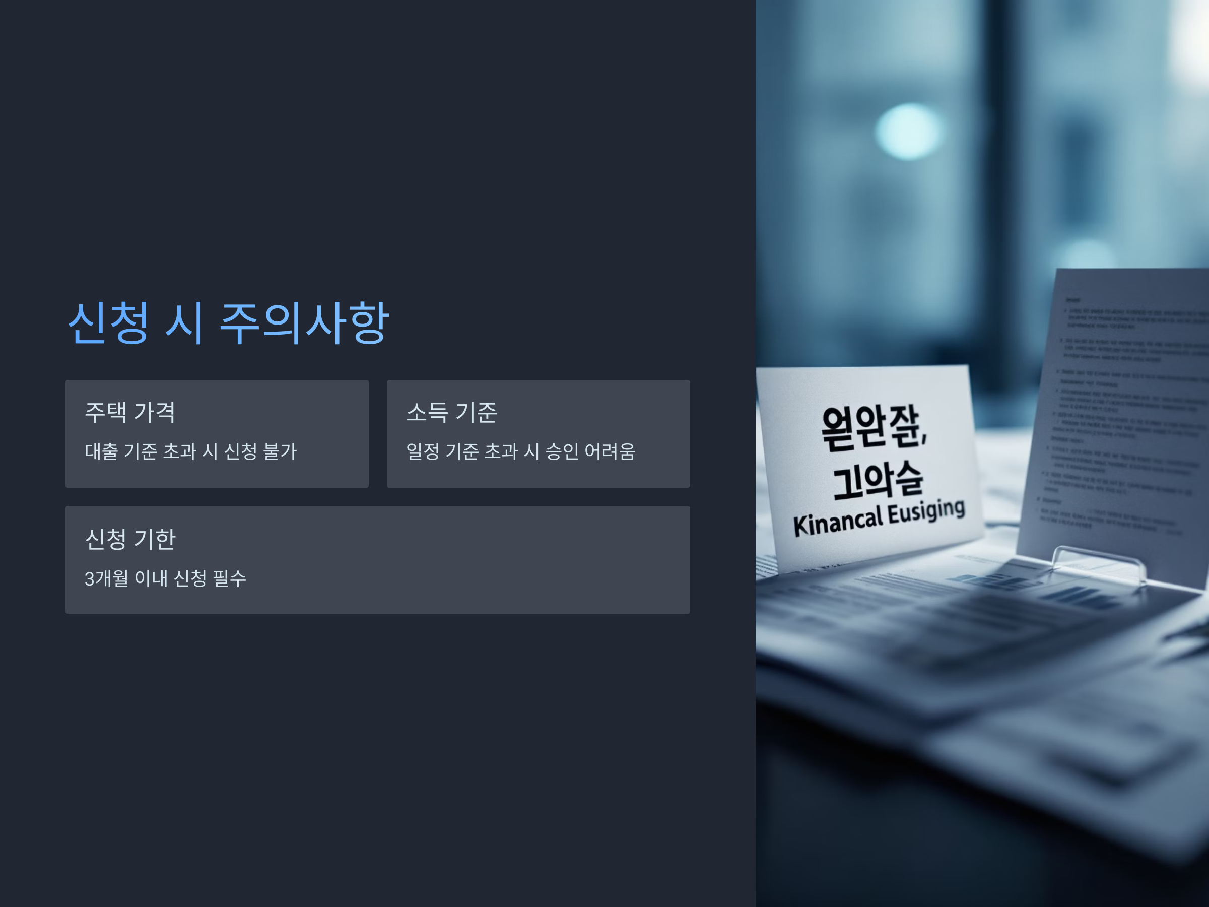 디딤돌대출 신청 시 아래 사항을 반드시 확인하세요.