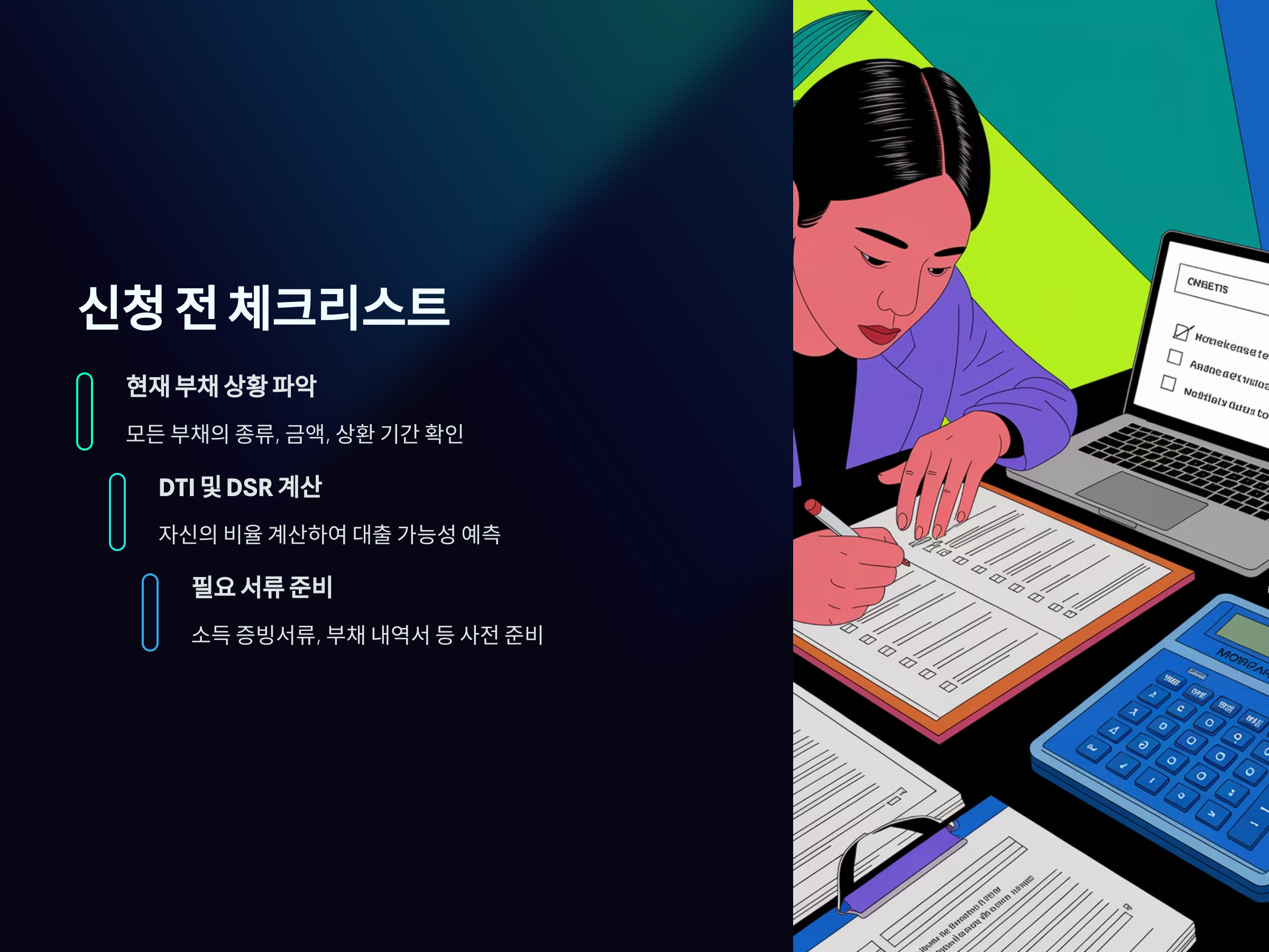 - 필요 서류 준비: 소득 증빙서류, 부채 내역서 등 필요한 서류를 사전에 준비합니다.
