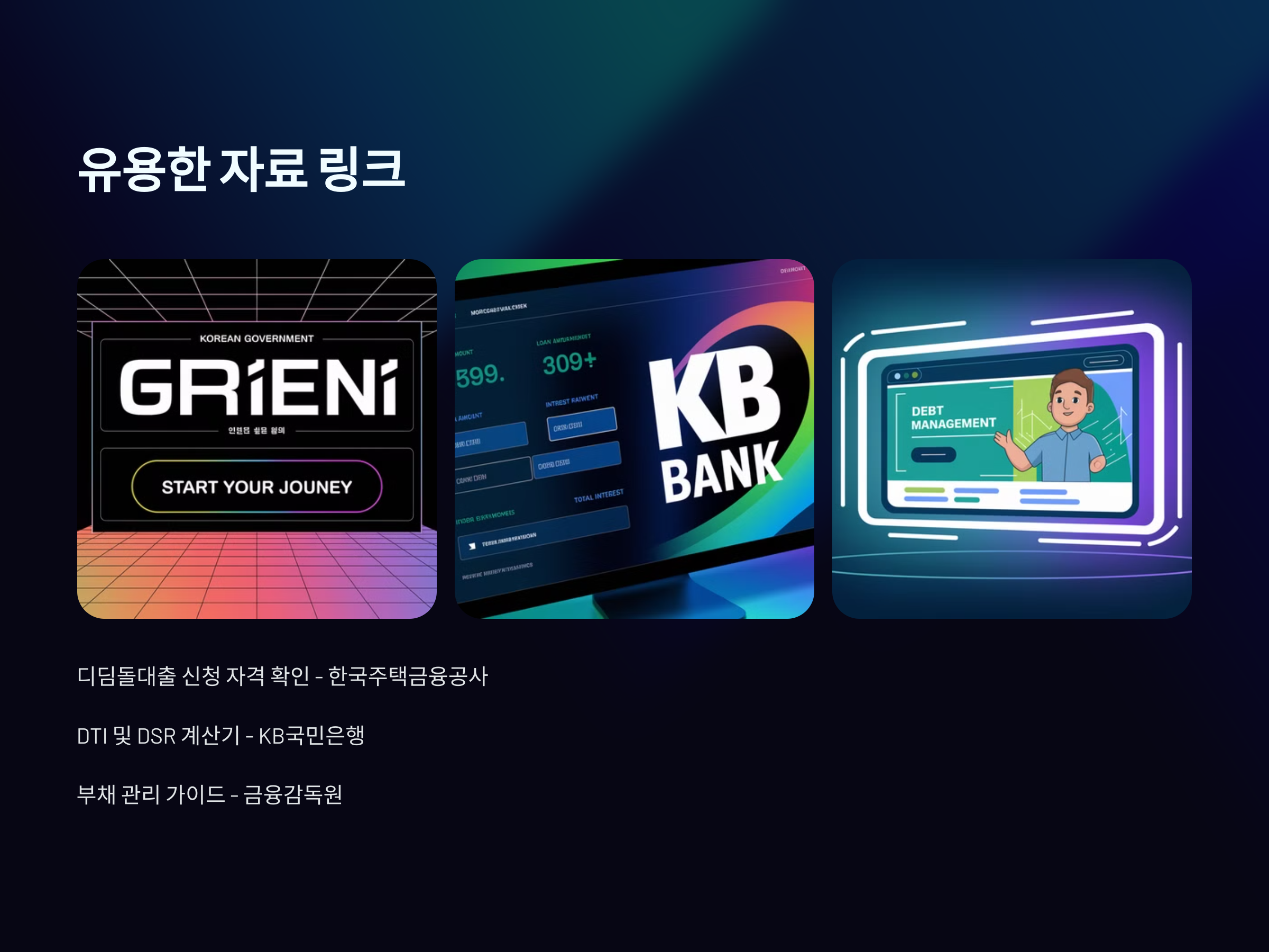 디딤돌대출 신청 자격 확인하기 DTI 및 DSR 계산기 사용해보기 금융감독원 부채 관리 가이드 읽어보기