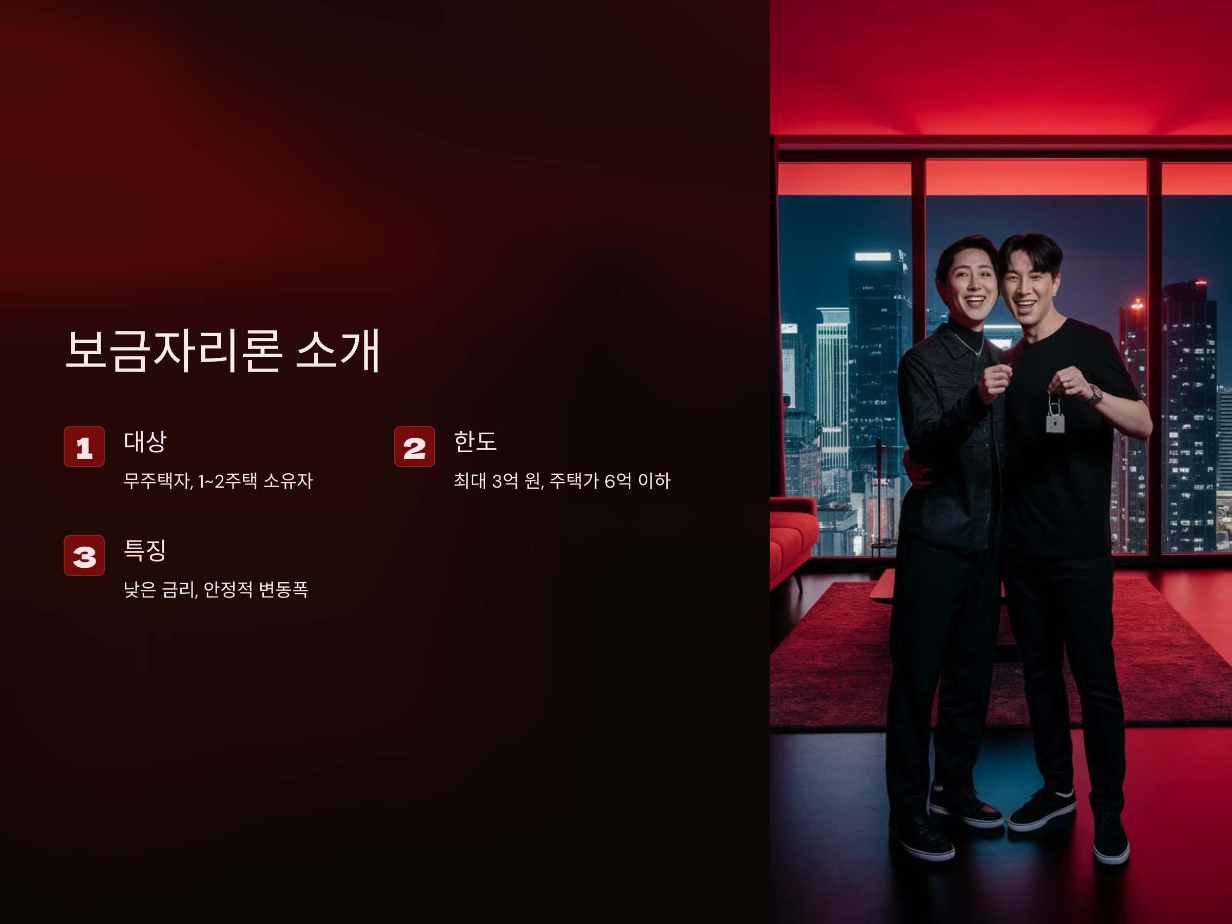 - 일정 가격 이하의 주택을 구입하는 사람들에게 유리한 대출 상품입니다.