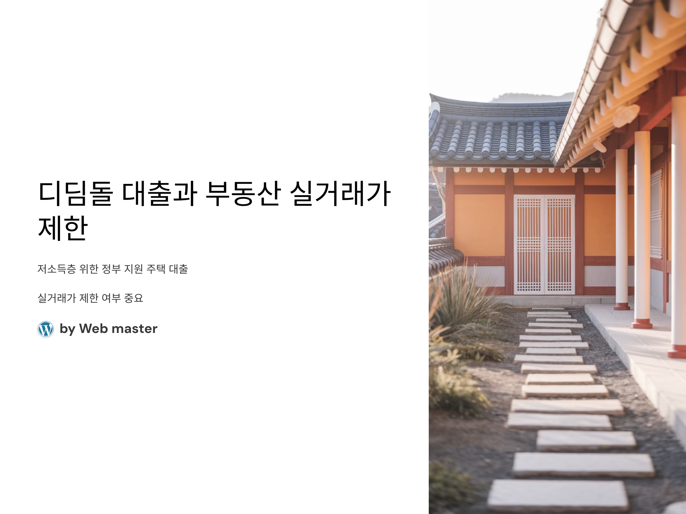 디딤돌 대출은 정부에서 주택을 구입하려는 저소득층을 위해 제공하는 대출 상품입니다. 이 대출의 가장 큰 장점은 금리가 낮고, 조건이 비교적 유연하다는 점에서 많은 사람들에게 큰 도움이 됩니다. 하지만 이 대출을 받을 때 한 가지 중요한 점은 부동산 실거래가 제한 여부입니다. 이는 대출 승인을 받기 위한 중요한 기준이 되기 때문에, 어떤 부동산이 디딤돌 대출을 받을 수 있는지 정확히 알아두는 것이 필요합니다.